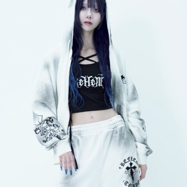The [REFLEM] Cross Embroidered Zip-Up Hoodie features a unique cross…$160.00 -
