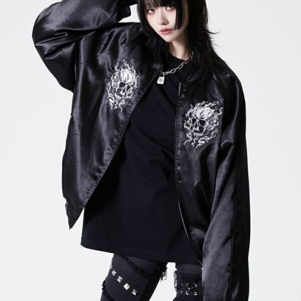 Skull Embroidered Dark Gloss Sukajan Jacket