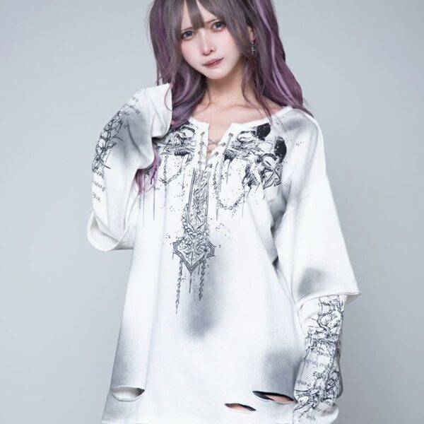 REFLEM presents a skull grunge layered long-sleeved T-shirt that evokes…