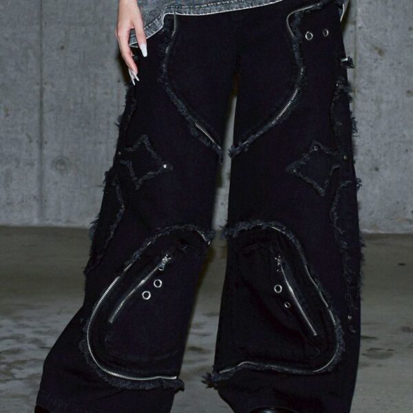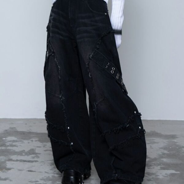 Introducing wide denim pants with cross-patch detailing from REFLEM. Made…