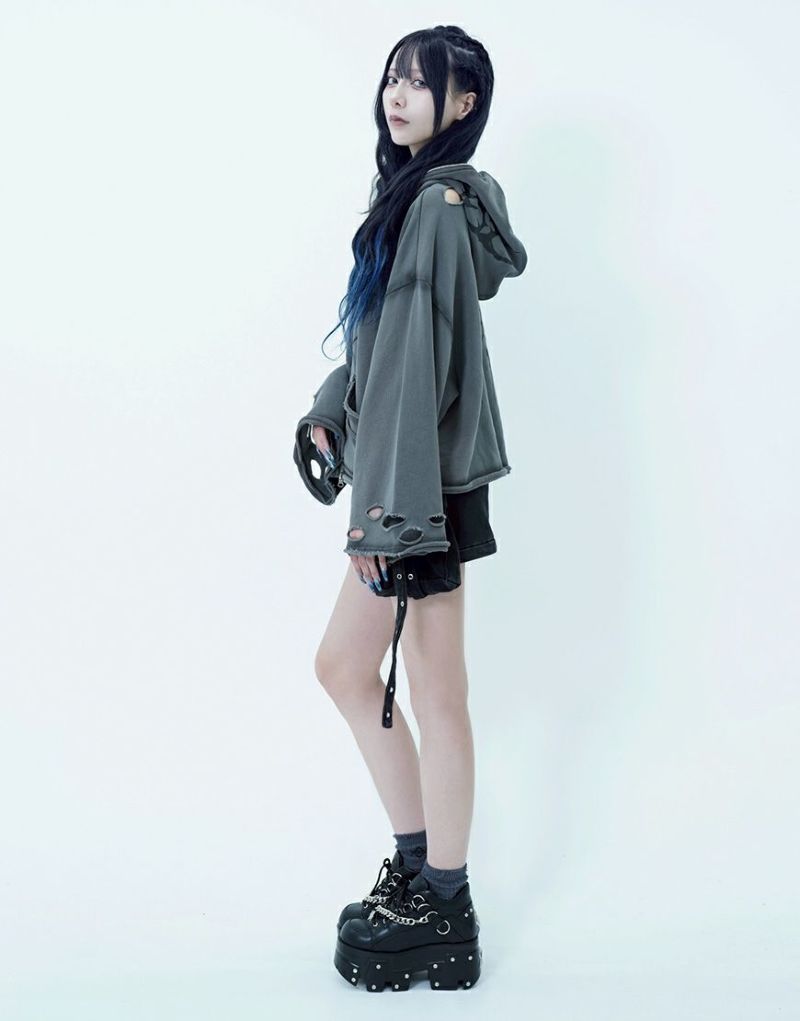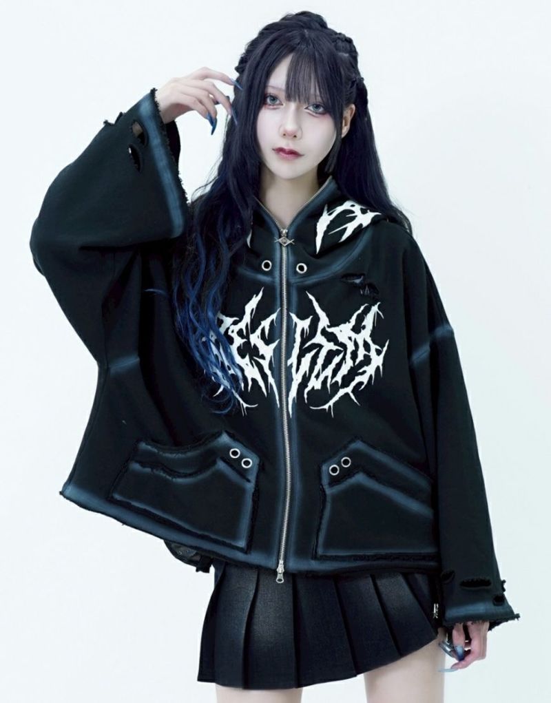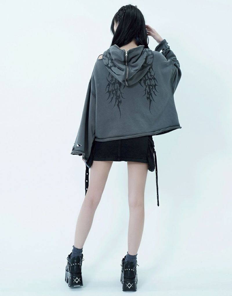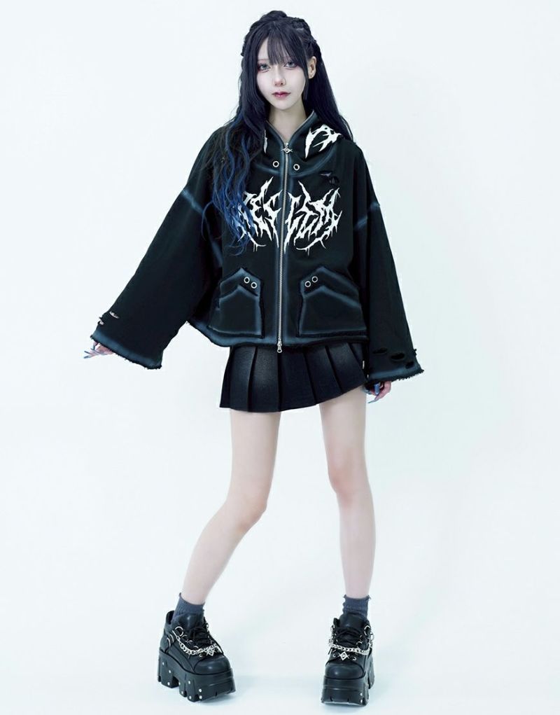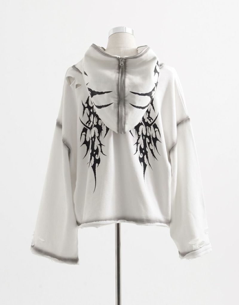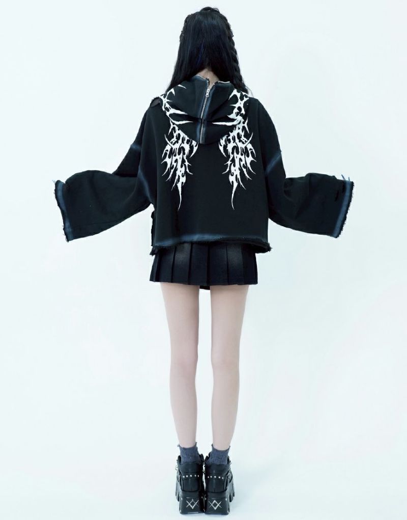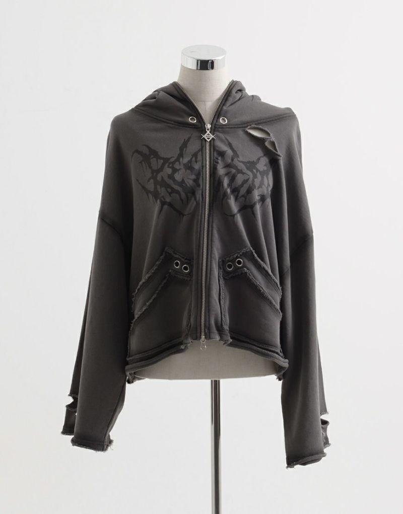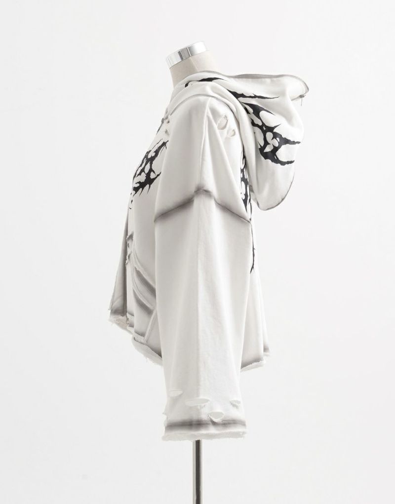This cropped zip-up hoodie boasts an edgy design that’s characteristic of REFLEM.