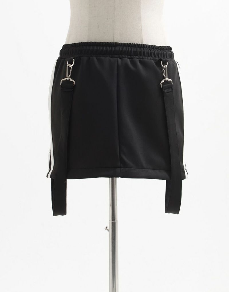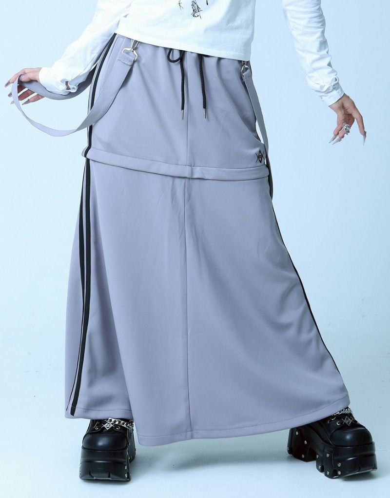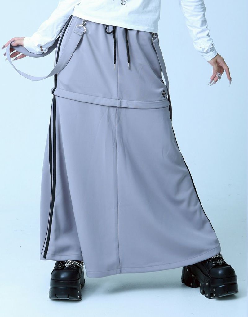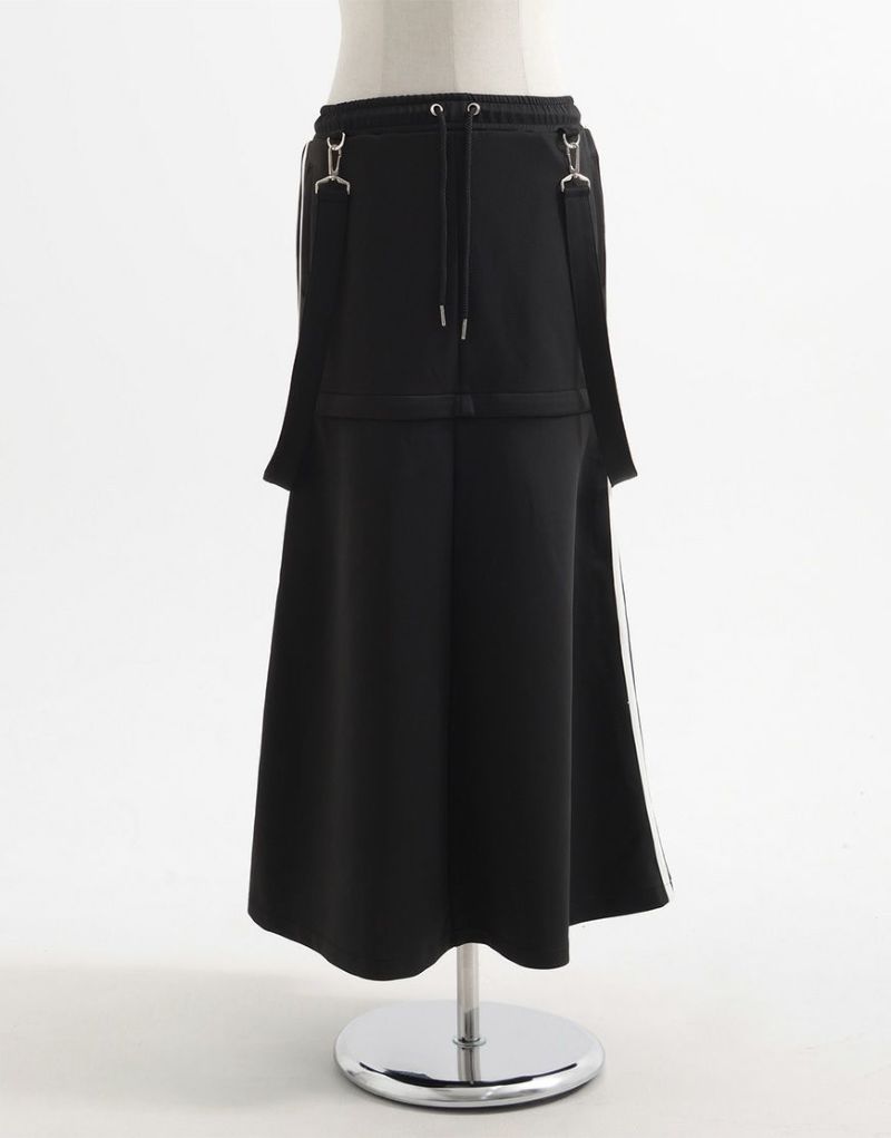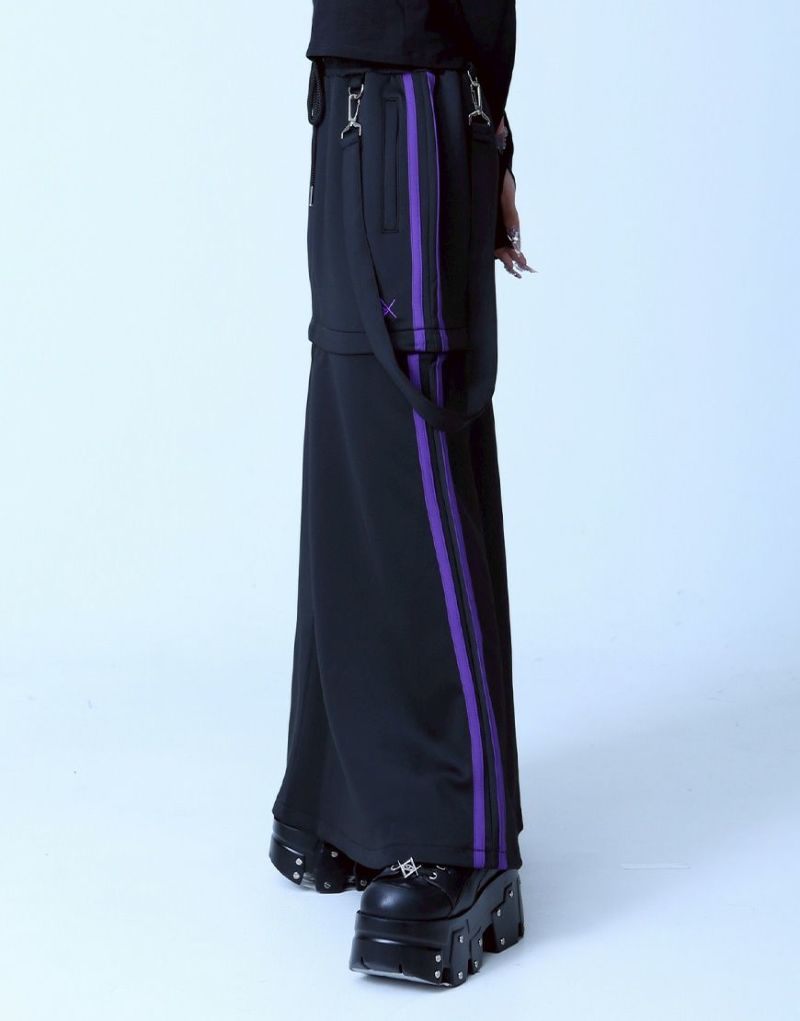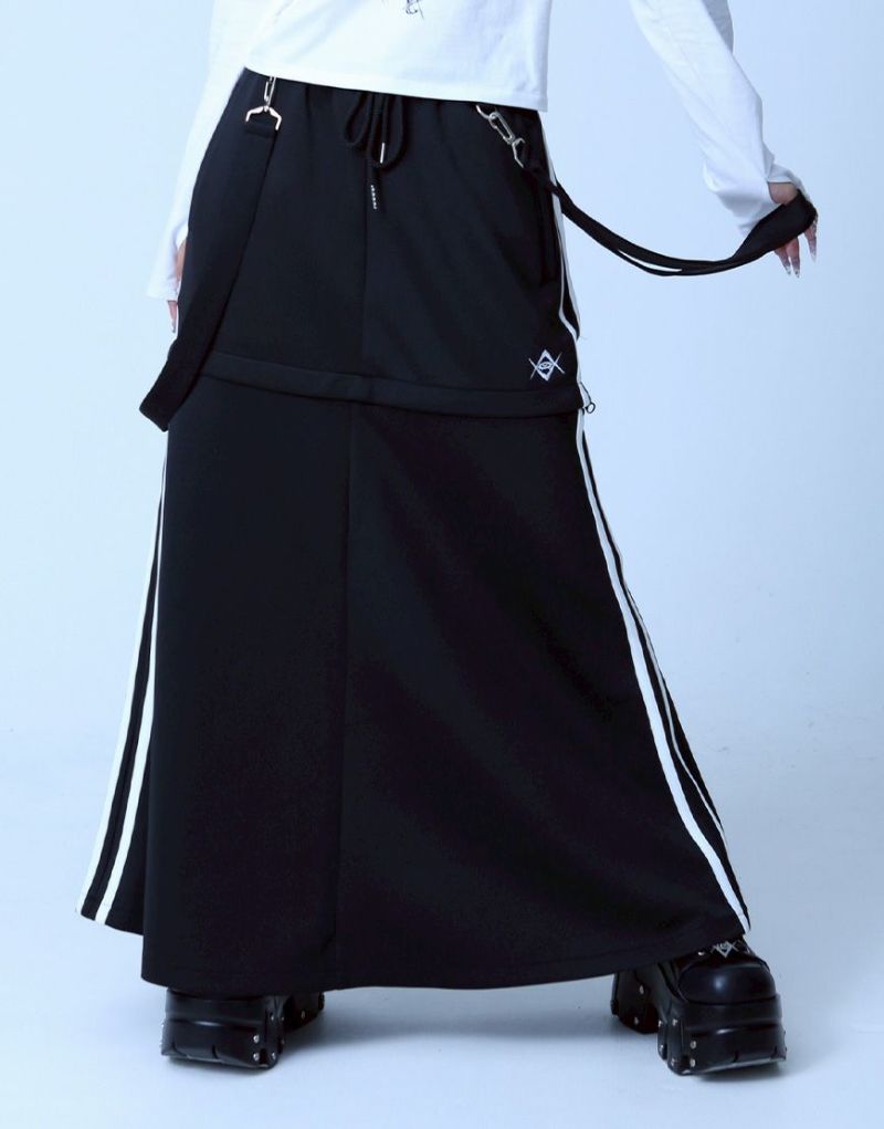 It features matching suspenders for a sporty yet edgy look. The embroidered logo adds a touch of brand presence. The two-way design allows you to customize it to suit your mood and style. We also recommend pairing it with a top from the same series. This unisex piece blends modern and street styles, making it a must-have.