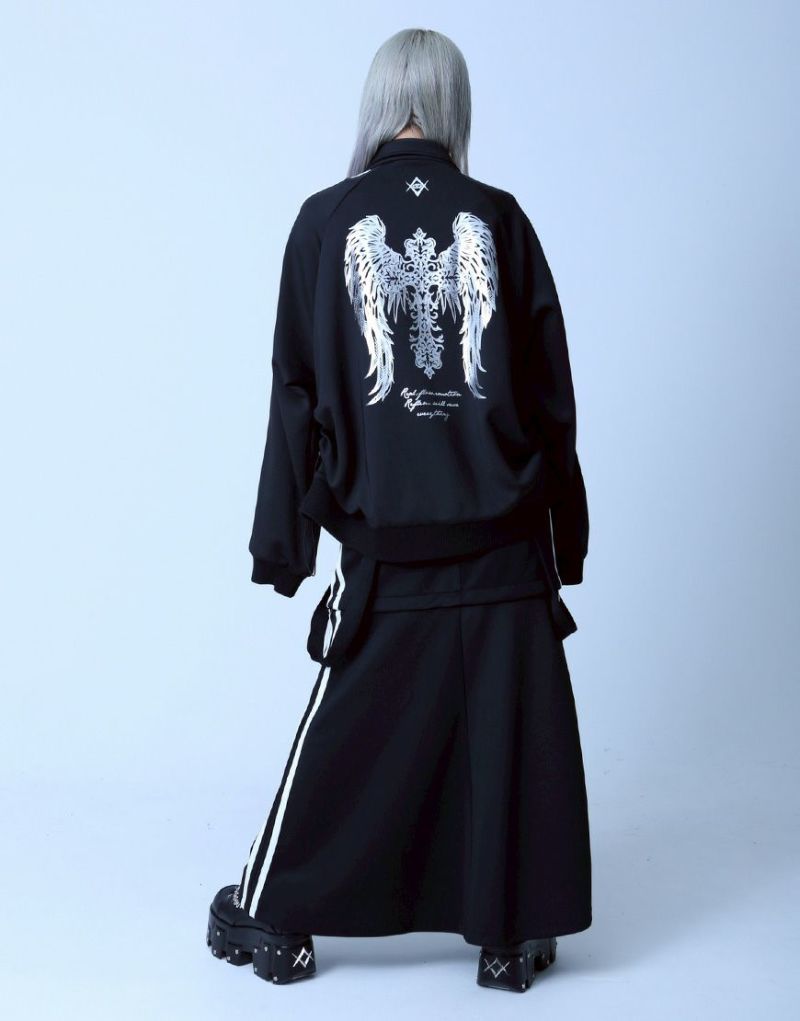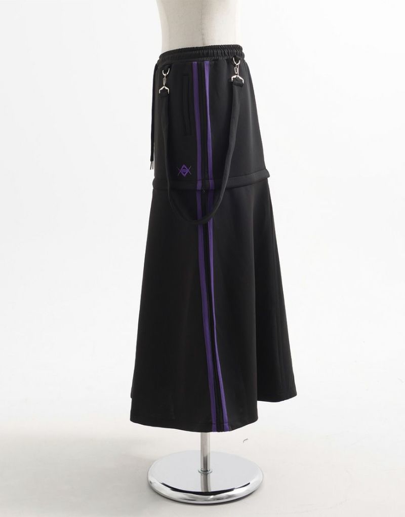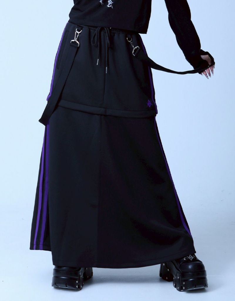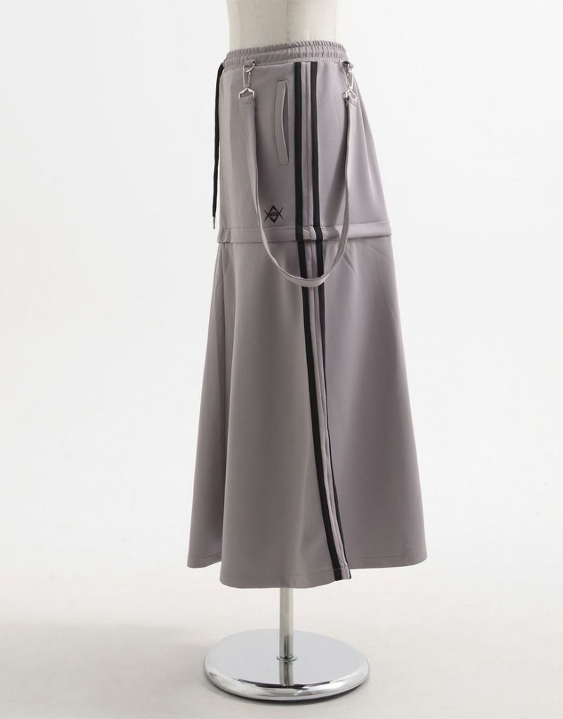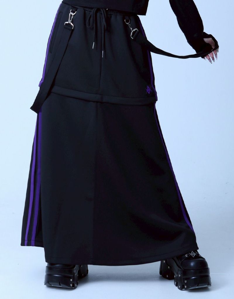It features matching suspenders for a sporty yet edgy look. The embroidered logo adds a touch of brand presence. The two-way design allows you to customize it to suit your mood and style. We also recommend pairing it with a top from the same series. This unisex piece blends modern and street styles, making it a must-have.