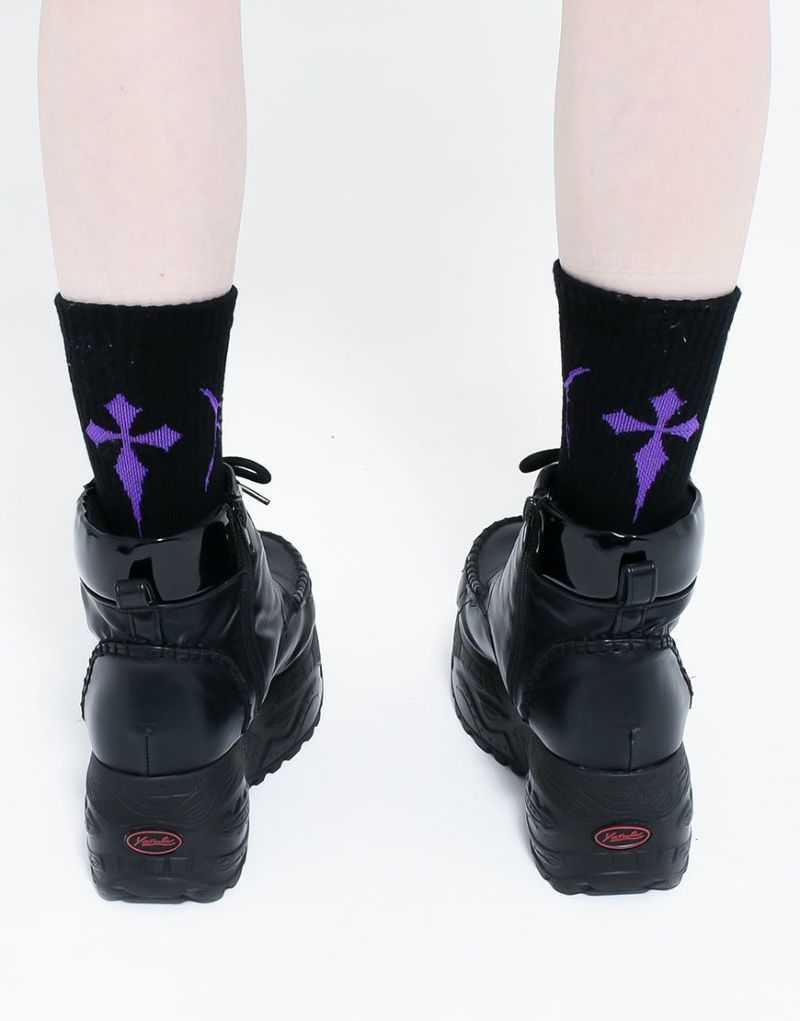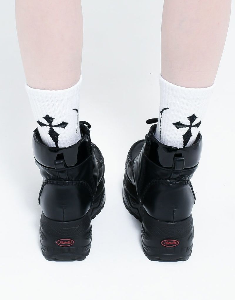 These socks feature an original cross logo design. Wear them simply, or peek them out from under your rolled-up bottoms or tuck them into your socks for a street-inspired look.