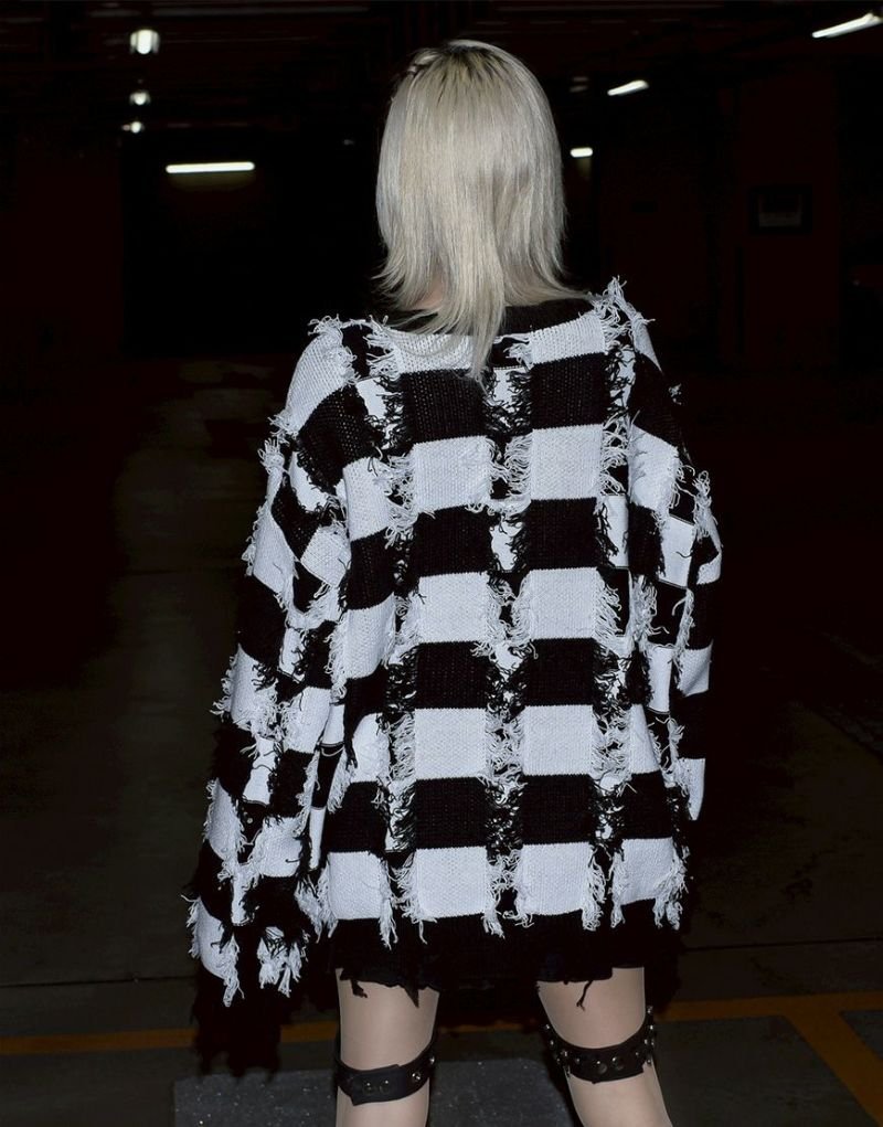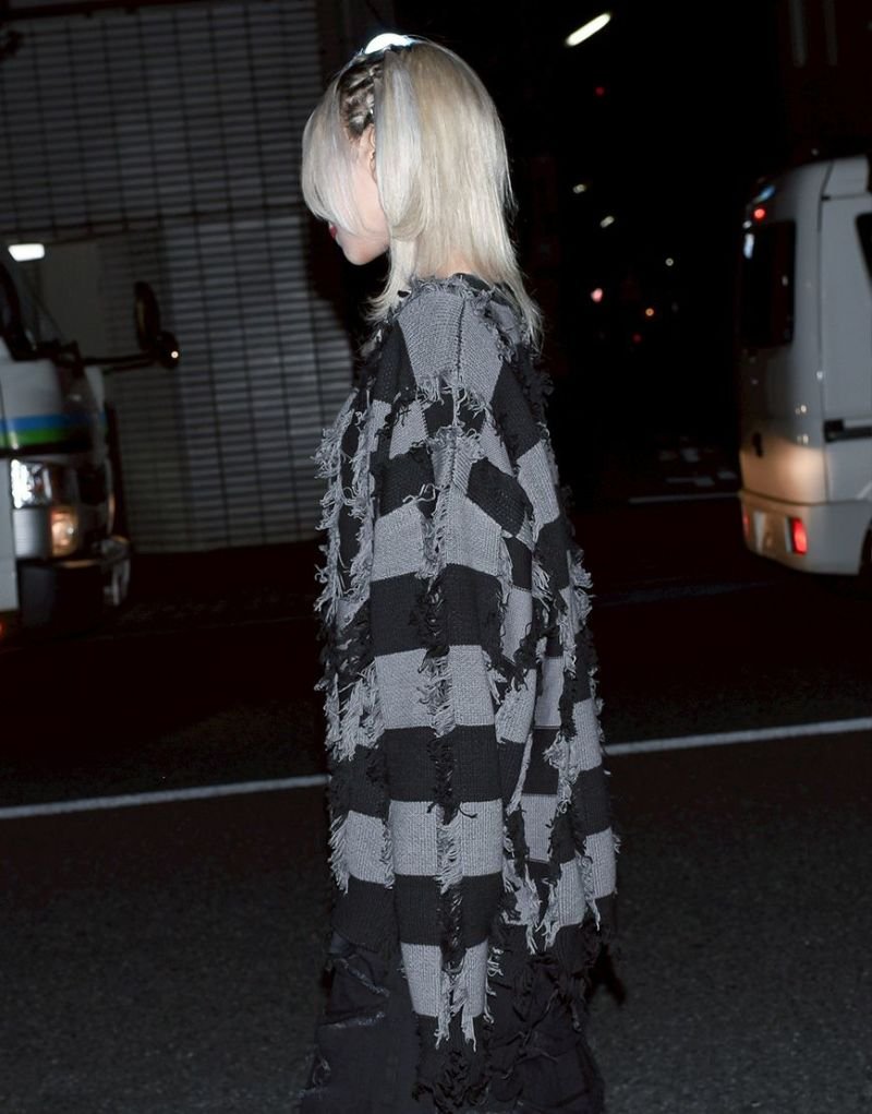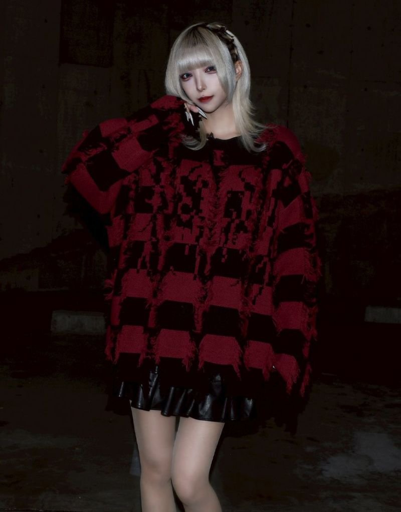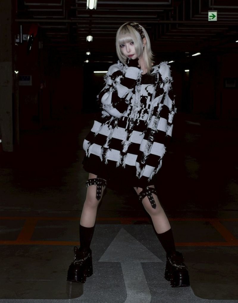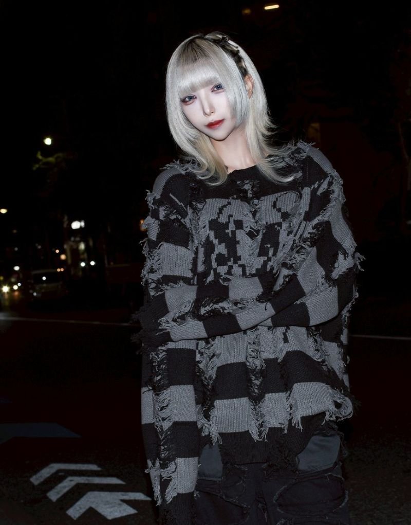Based on a tubular jacquard knit, the yarn is passed through and then cut to create a unique fuzziness and three-dimensional texture. Partially frayed fringe processing creates an artistic, distressed look.