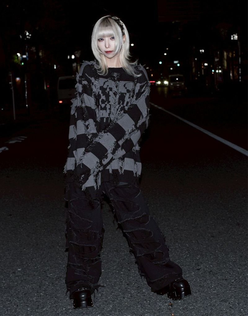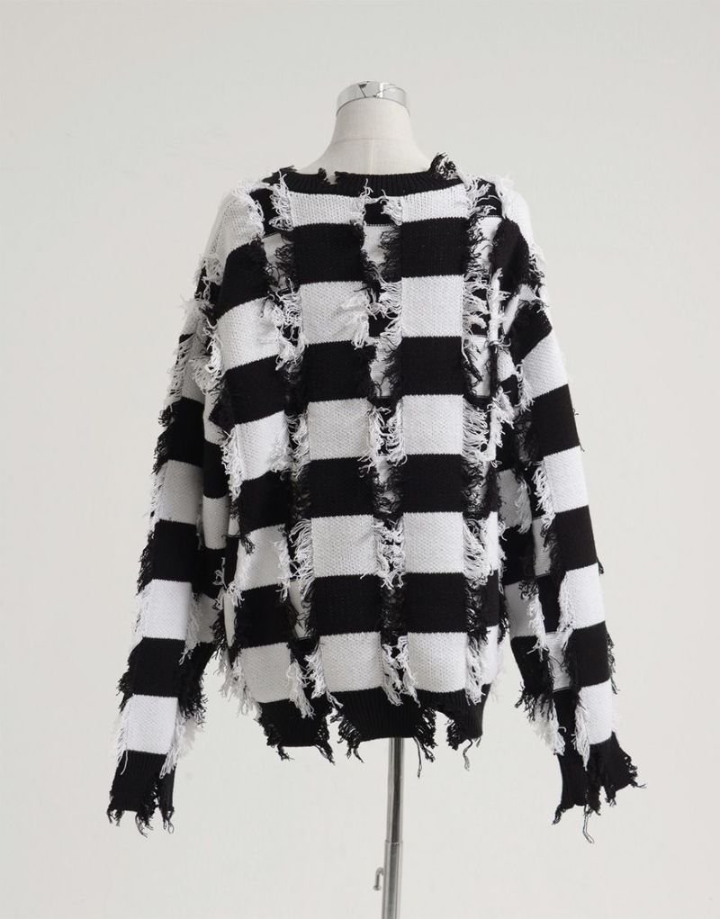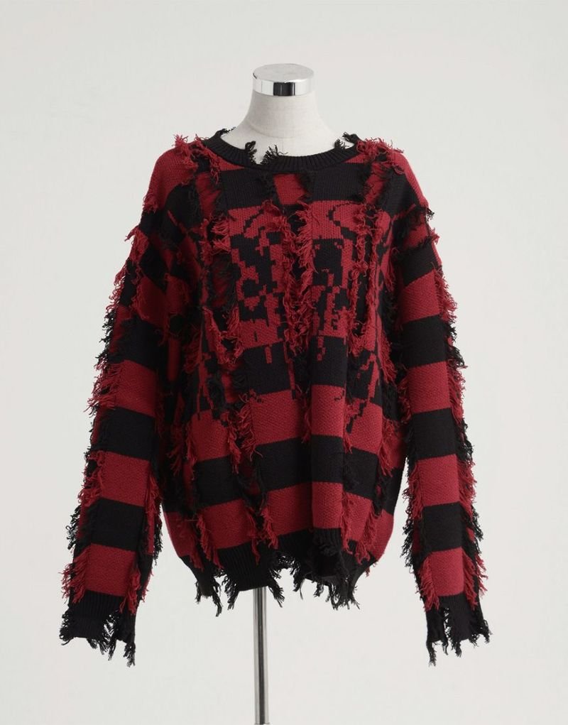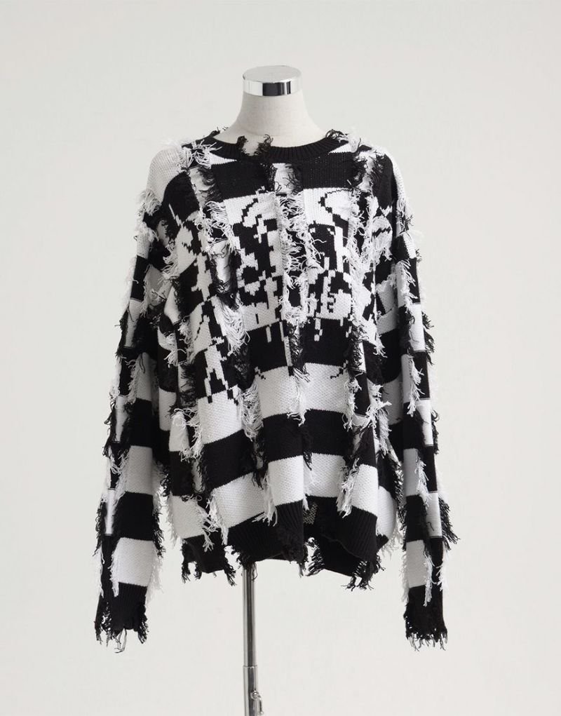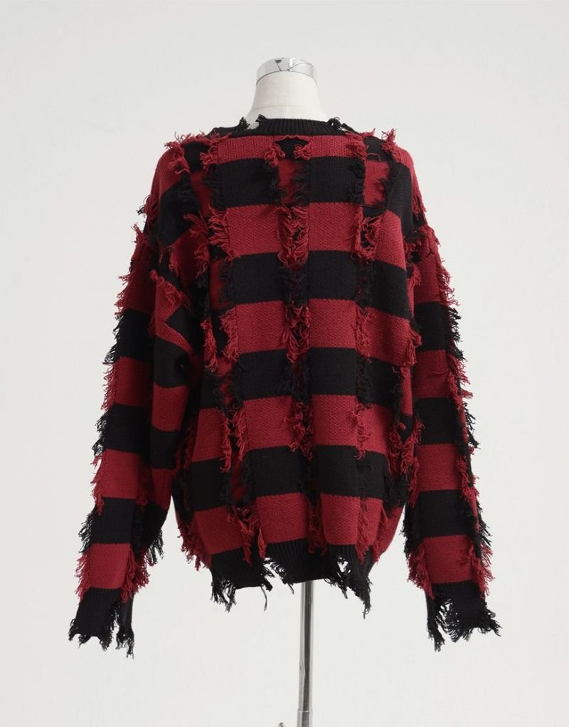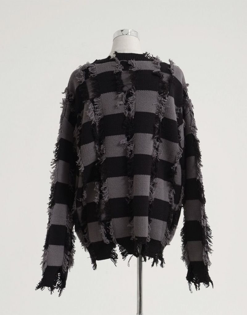 Heavy KnitREFLEM presents this striking broken striped knit pullover.