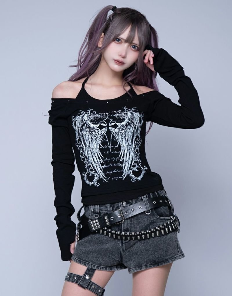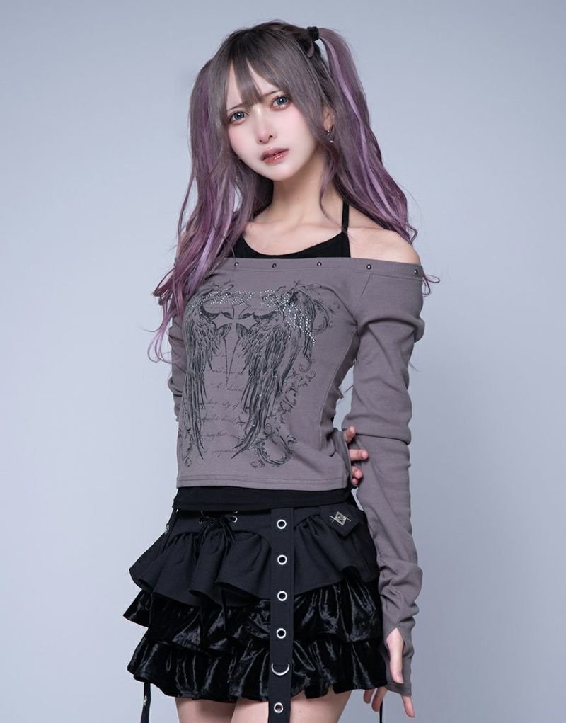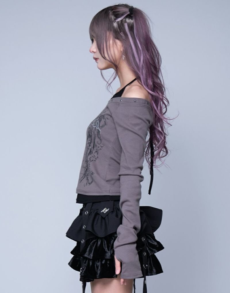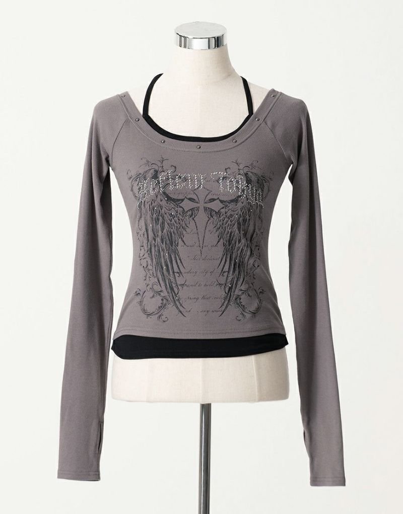 ShirtsThis long-sleeved T-shirt features a cami layered design, capturing REFLEM’s signature decadent mood.