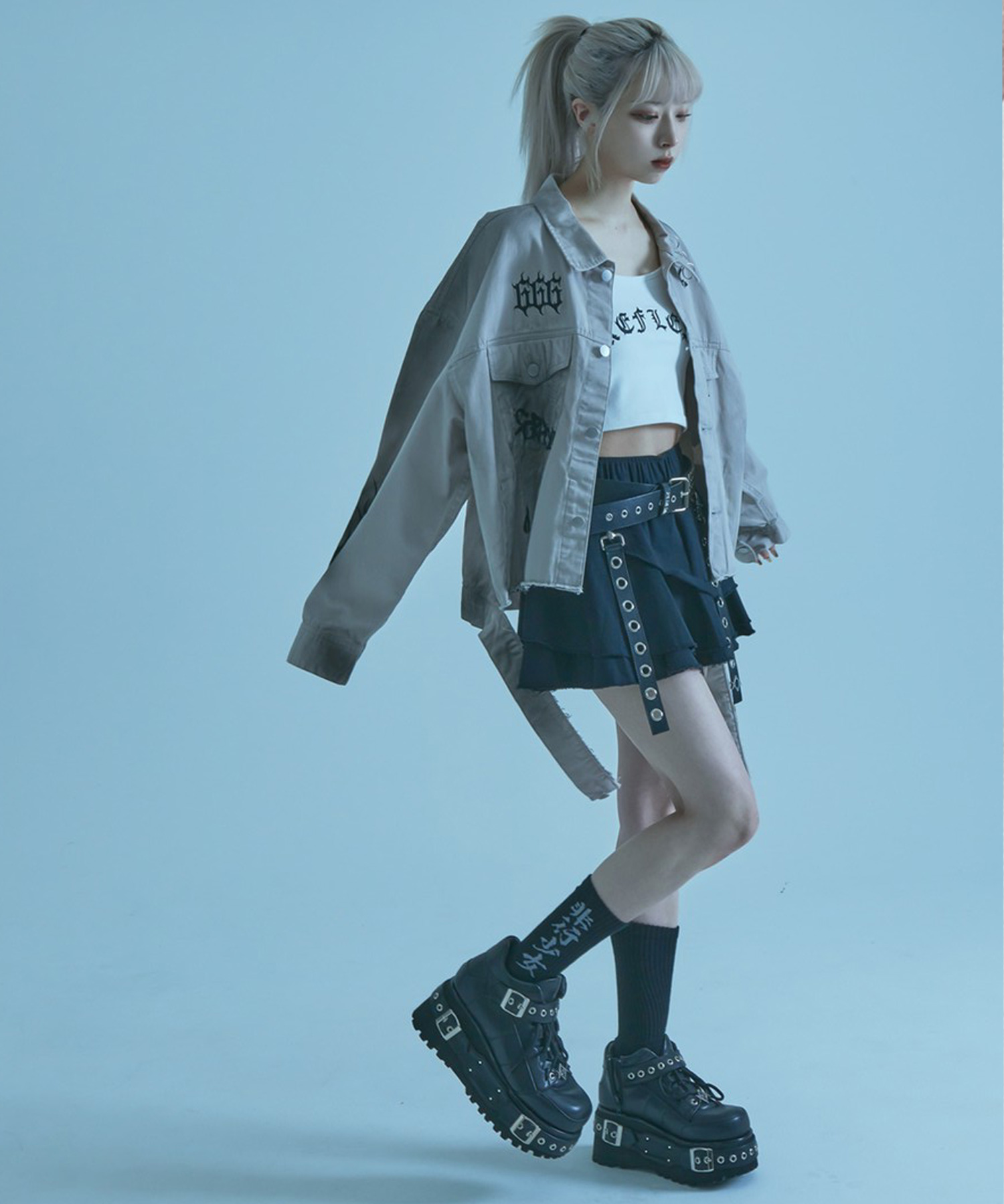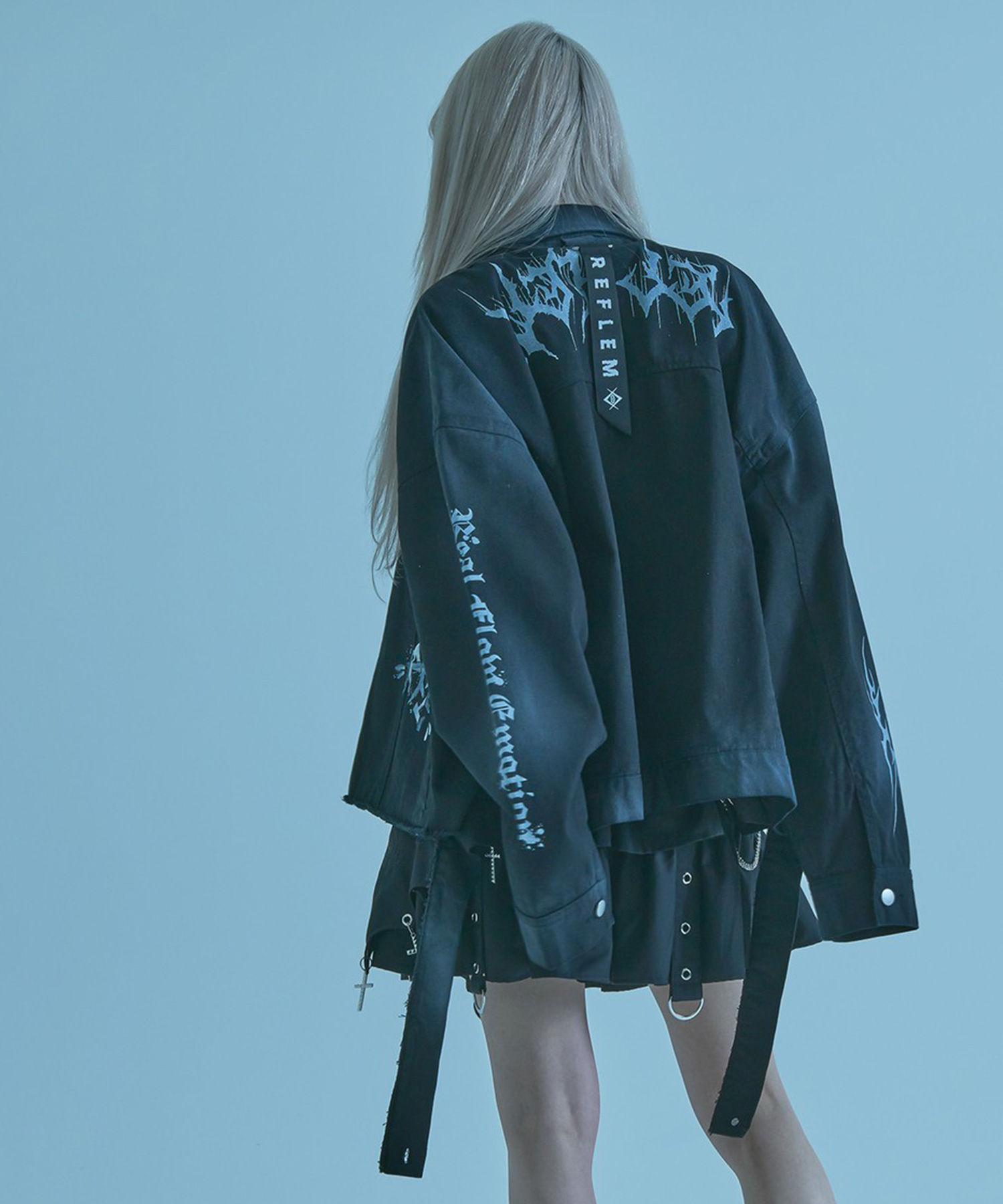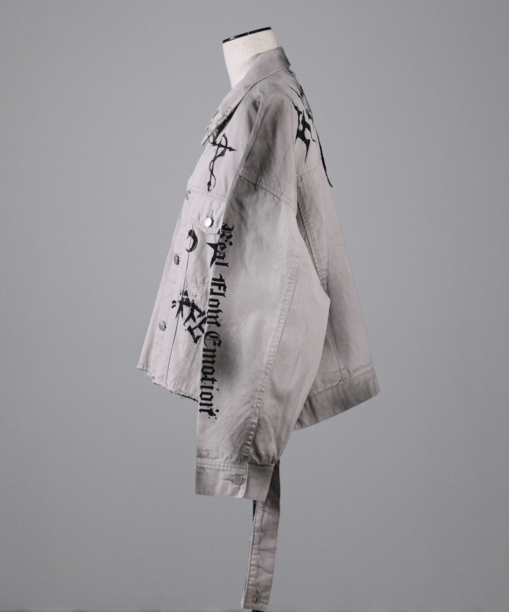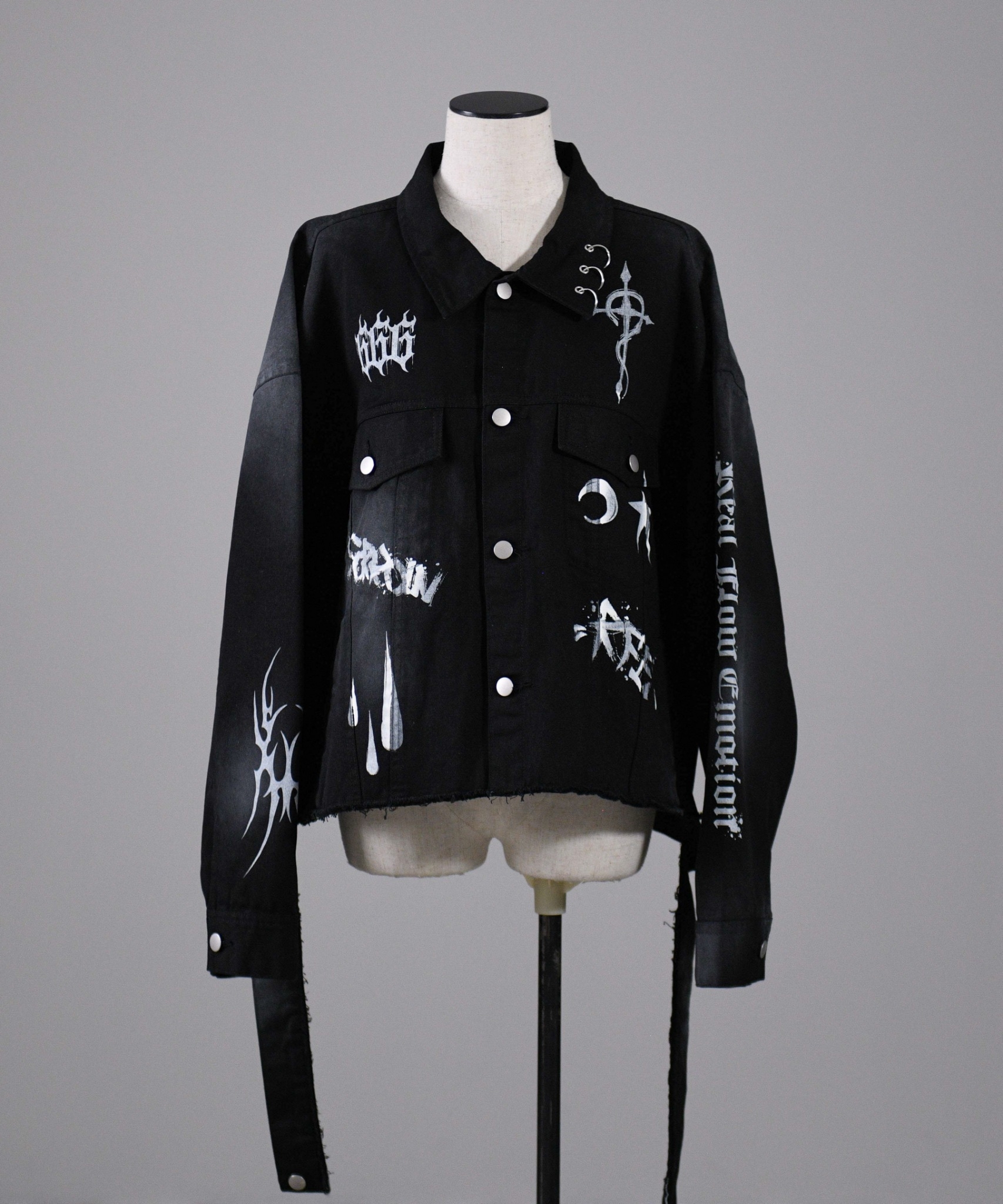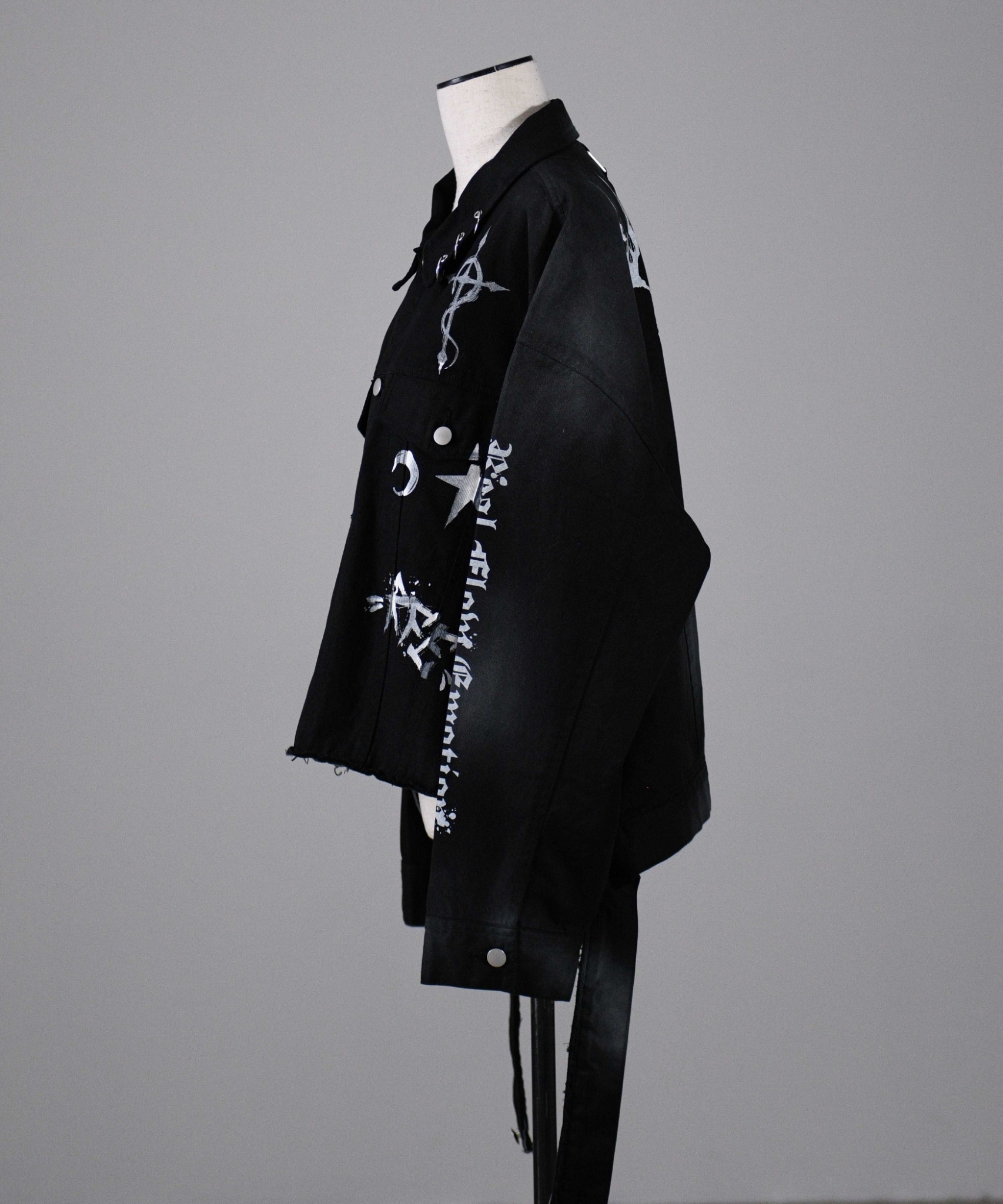 It features a sleek form with raw-cut designs, pigment processing, and unique artwork, making it a distinctive piece.