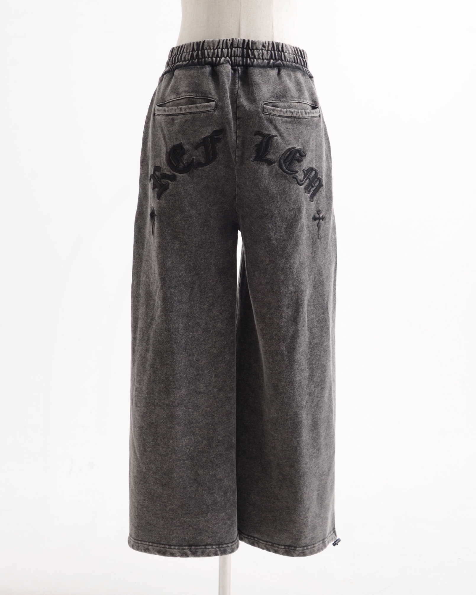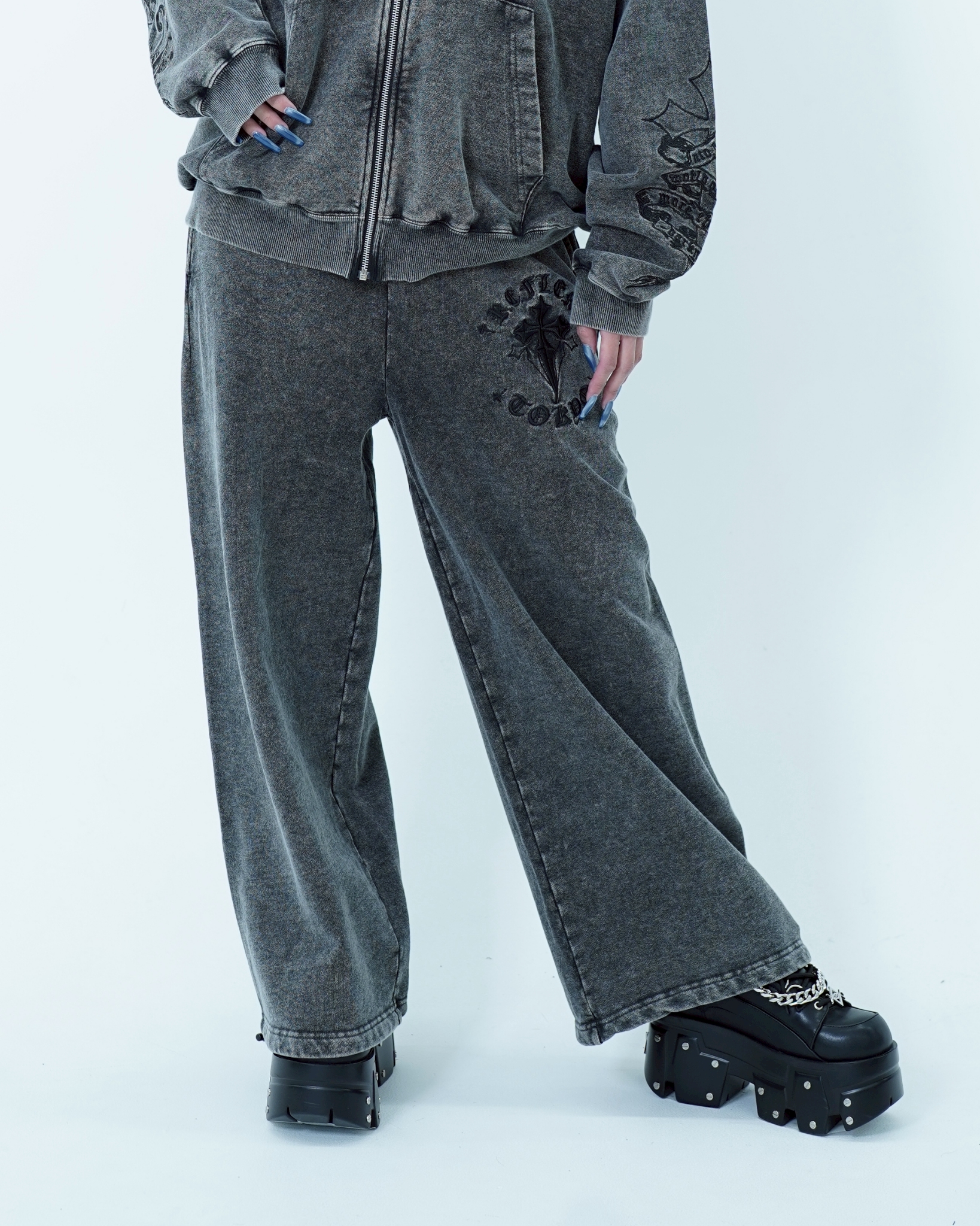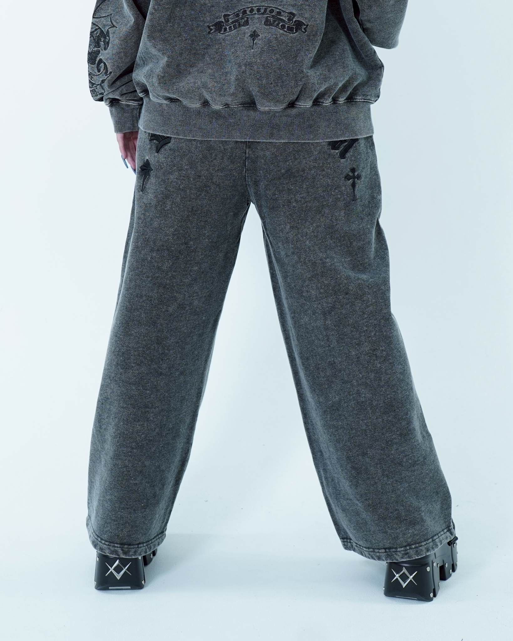 PantsElevate your style with the REFLEM Cross Embroidered Wide-Leg Sweatpants, designed for both men and women.