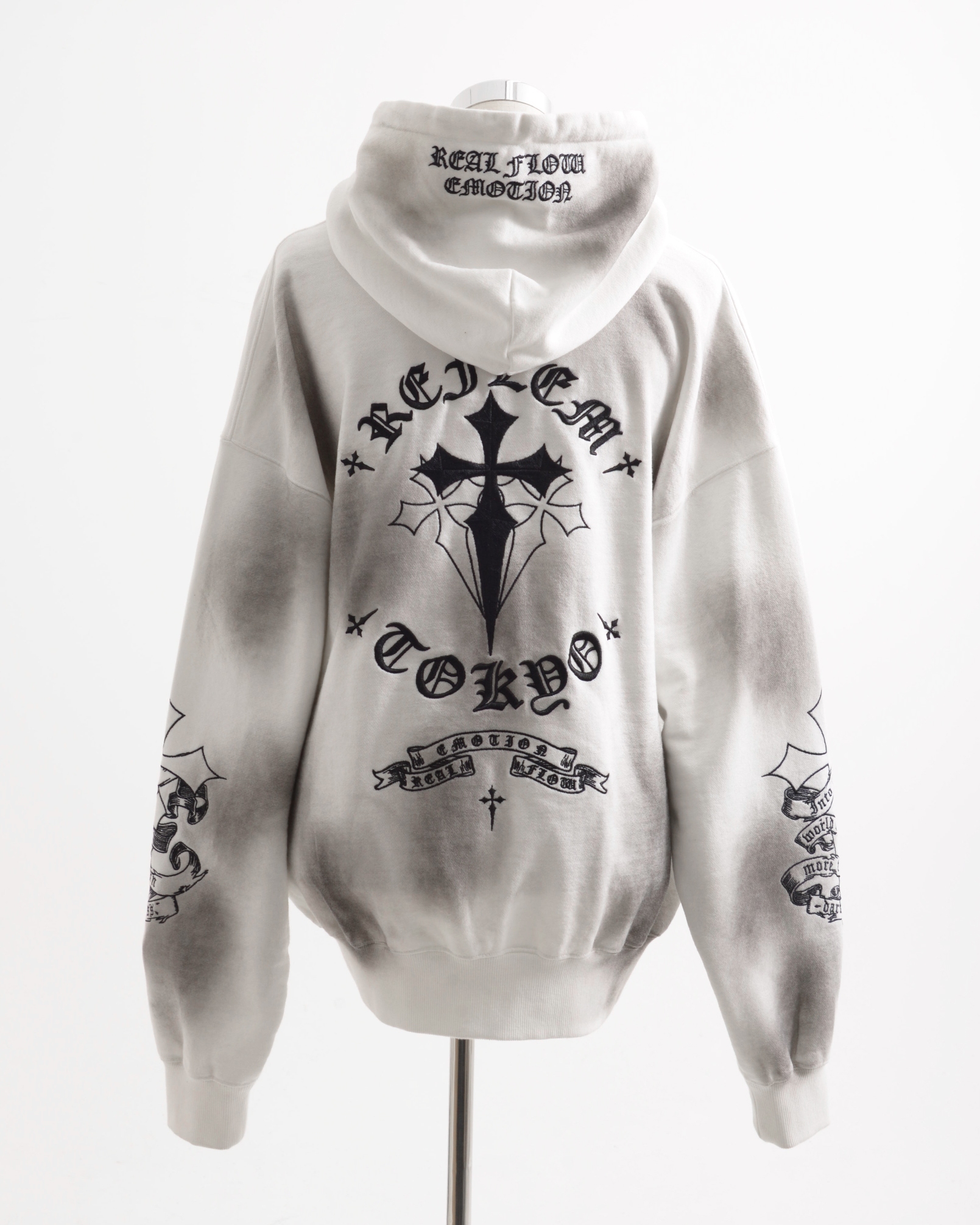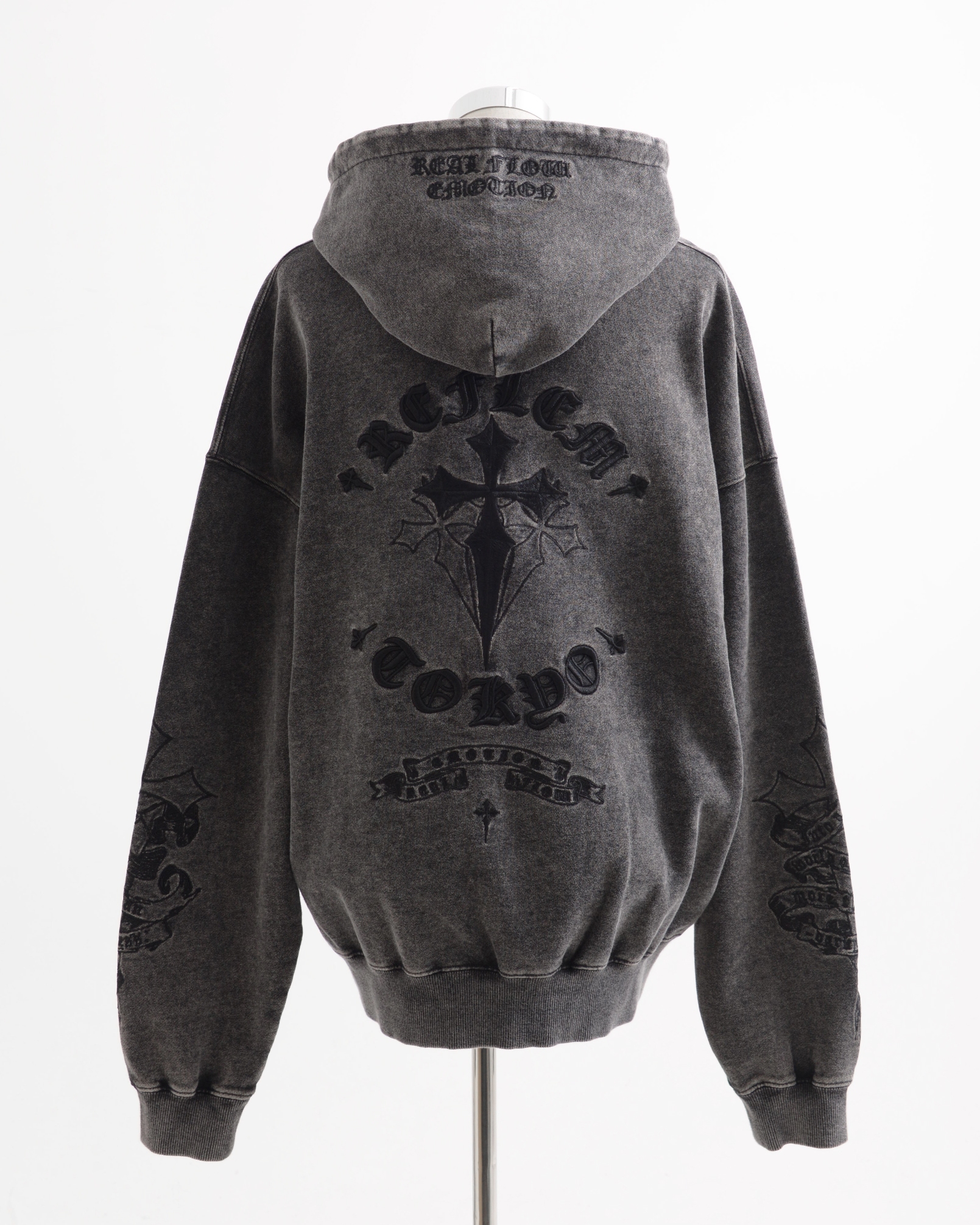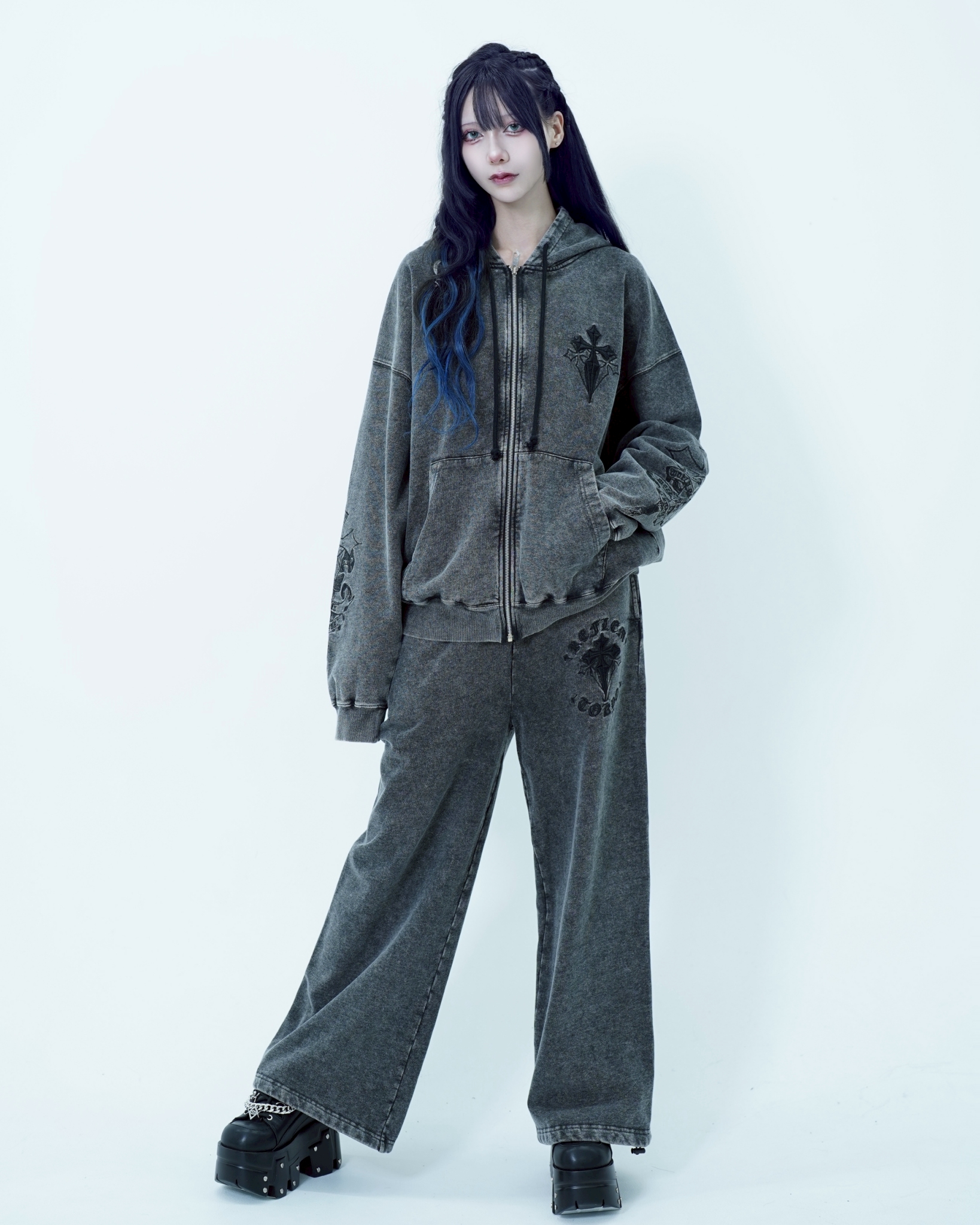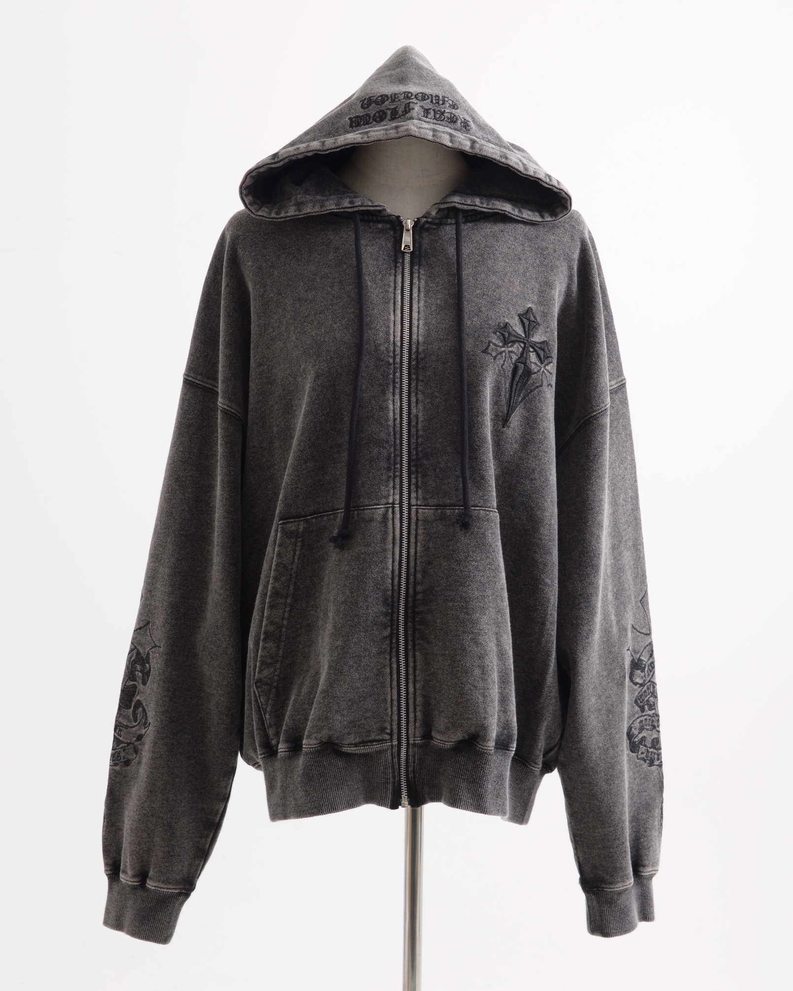 HoodiesThe [REFLEM] Cross Embroidered Zip-Up Hoodie features a unique cross embroidery, blending style and comfort for a versatile addition to your wardrobe.