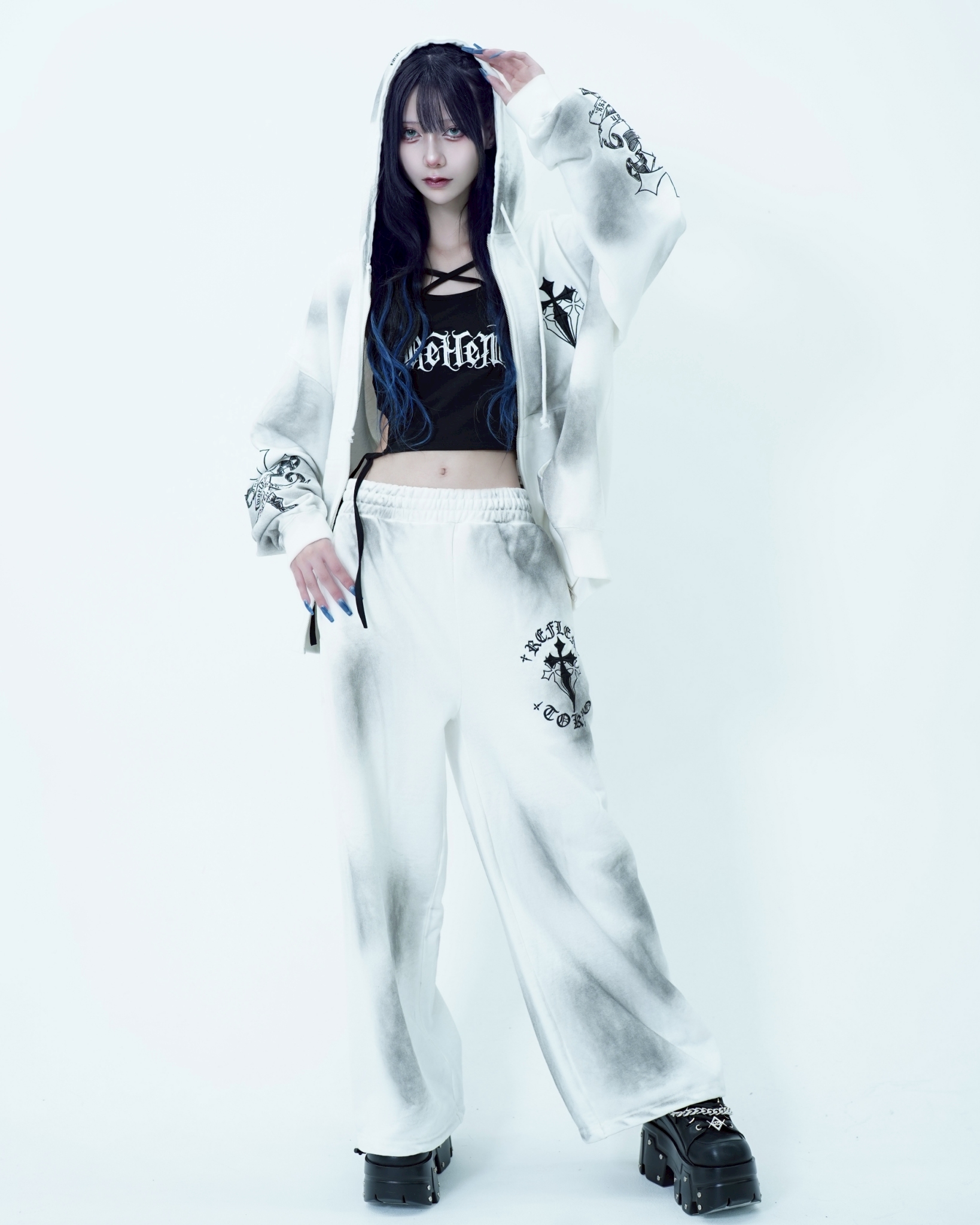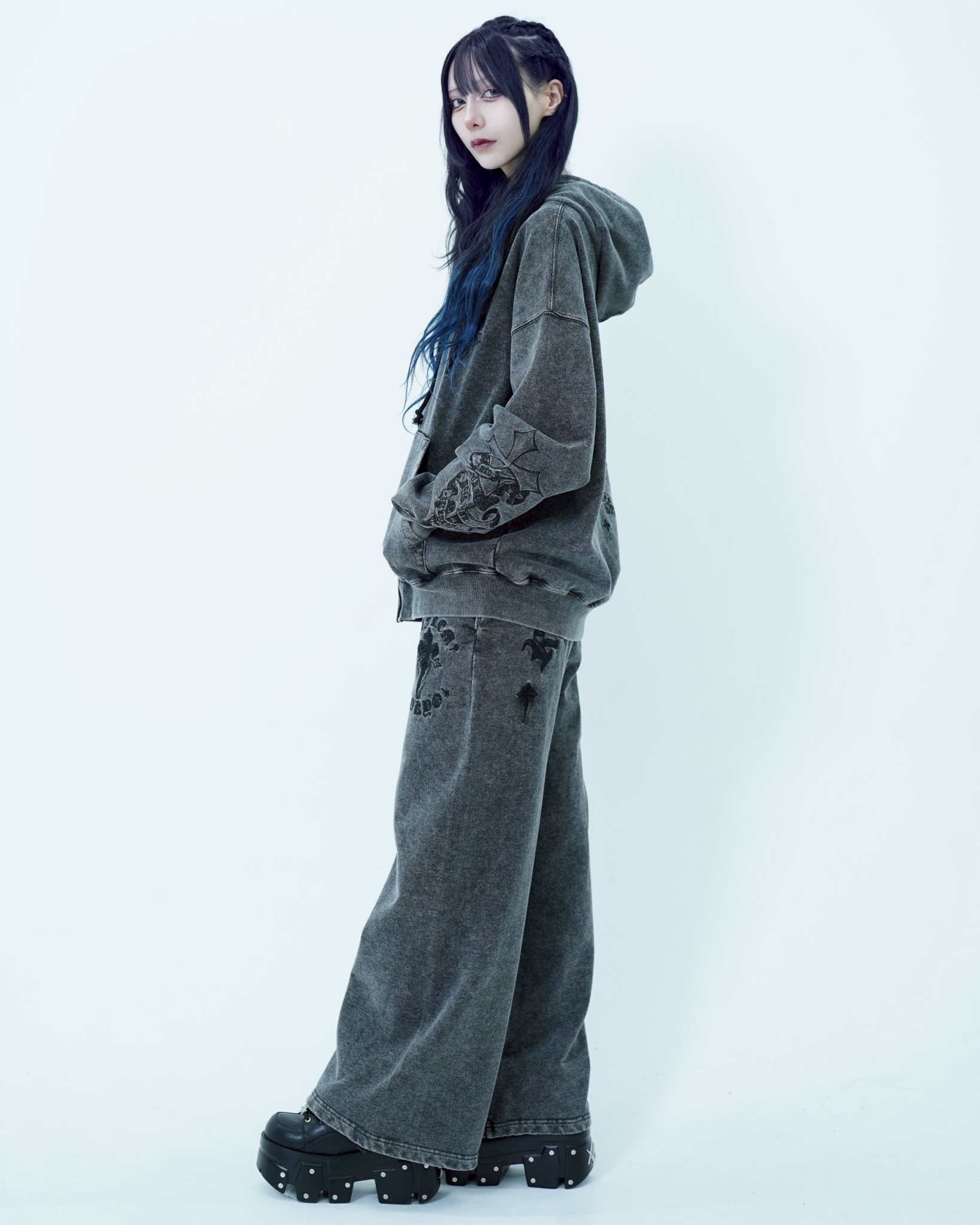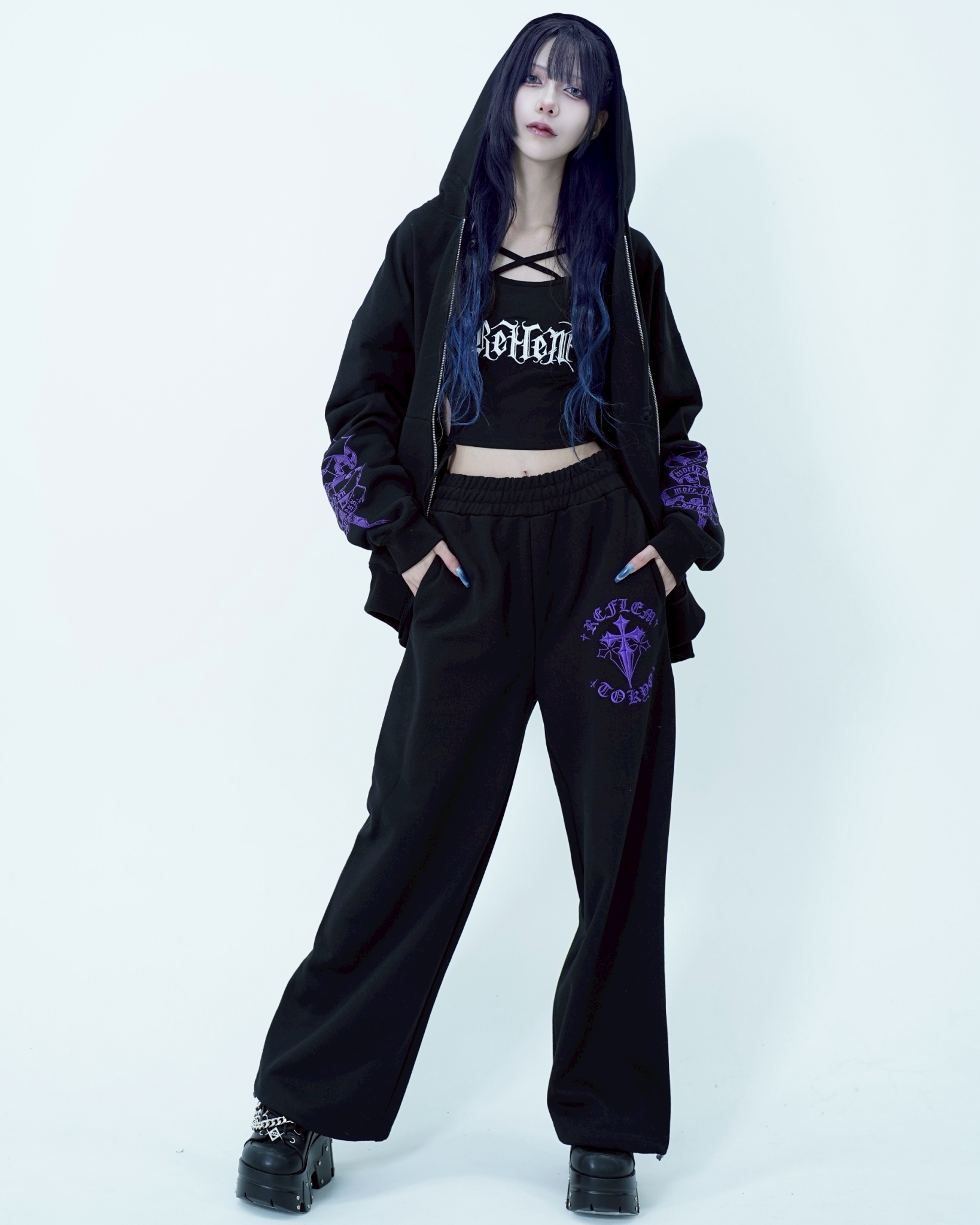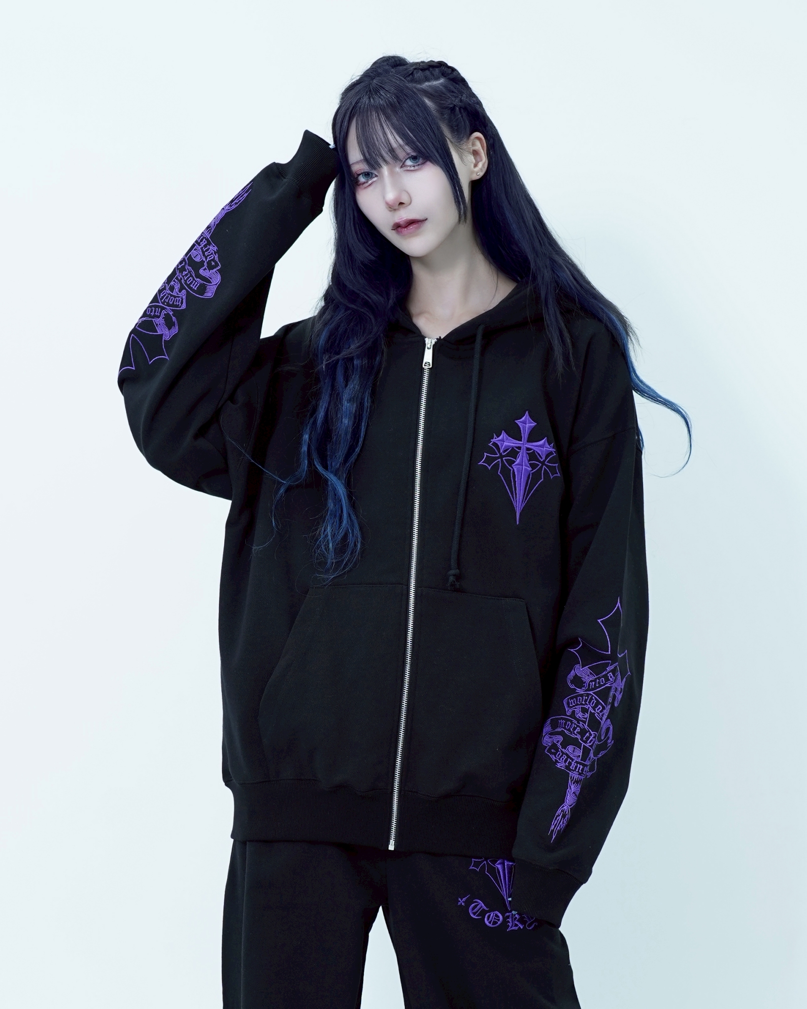 HoodiesThe [REFLEM] Cross Embroidered Zip-Up Hoodie features a unique cross embroidery, blending style and comfort for a versatile addition to your wardrobe.