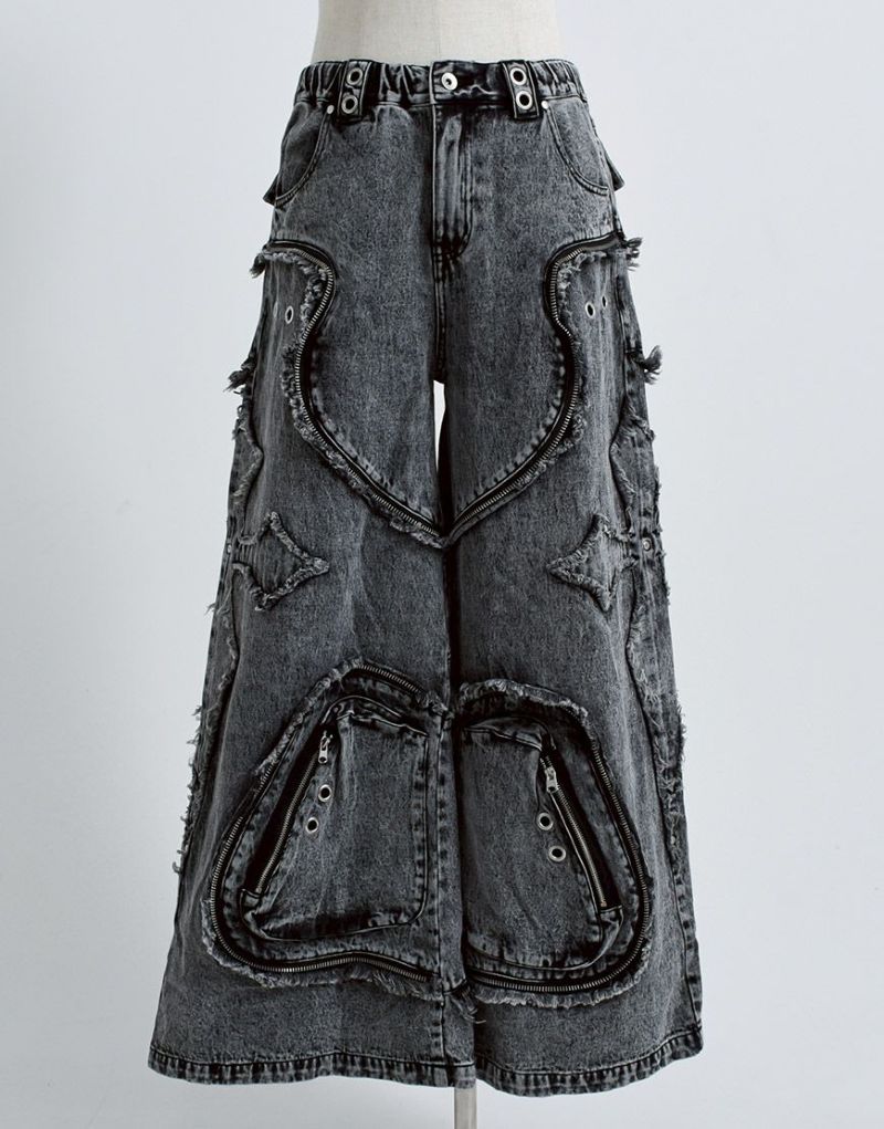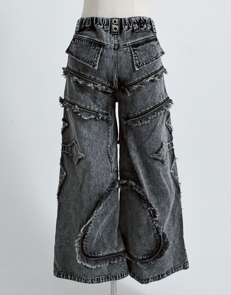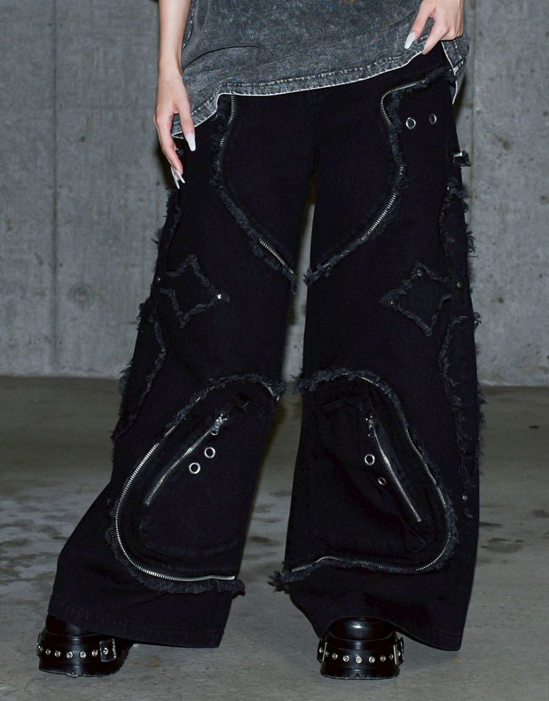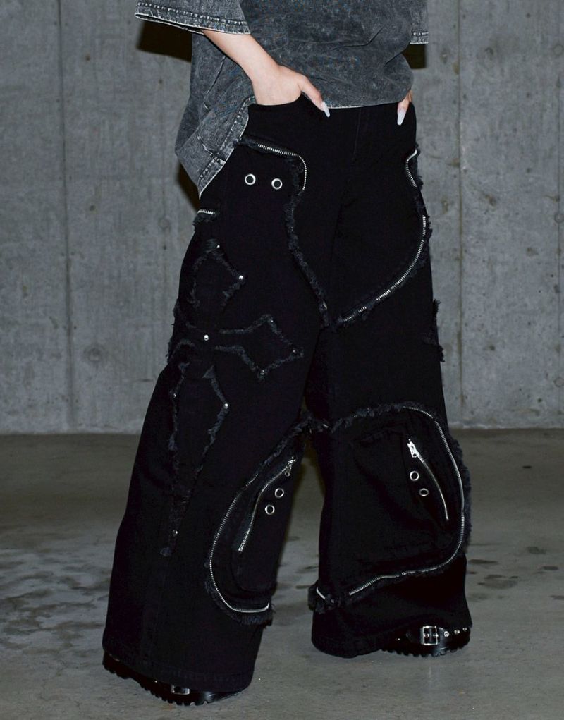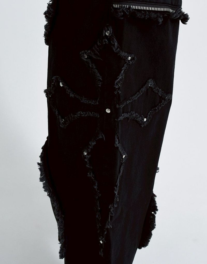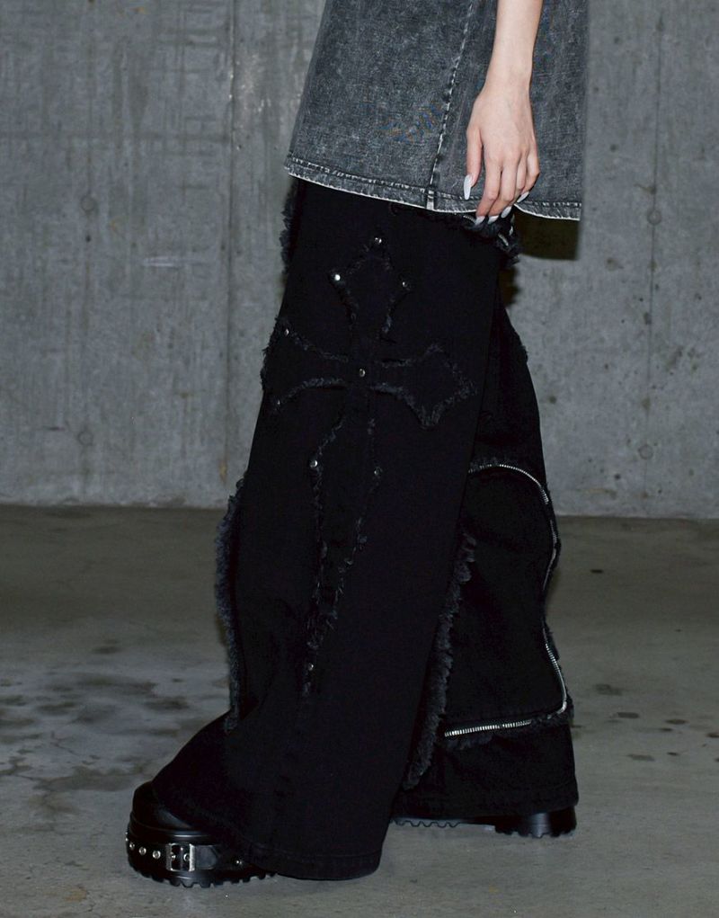 PantsIntroducing wide denim pants with cross-patch detailing from REFLEM.