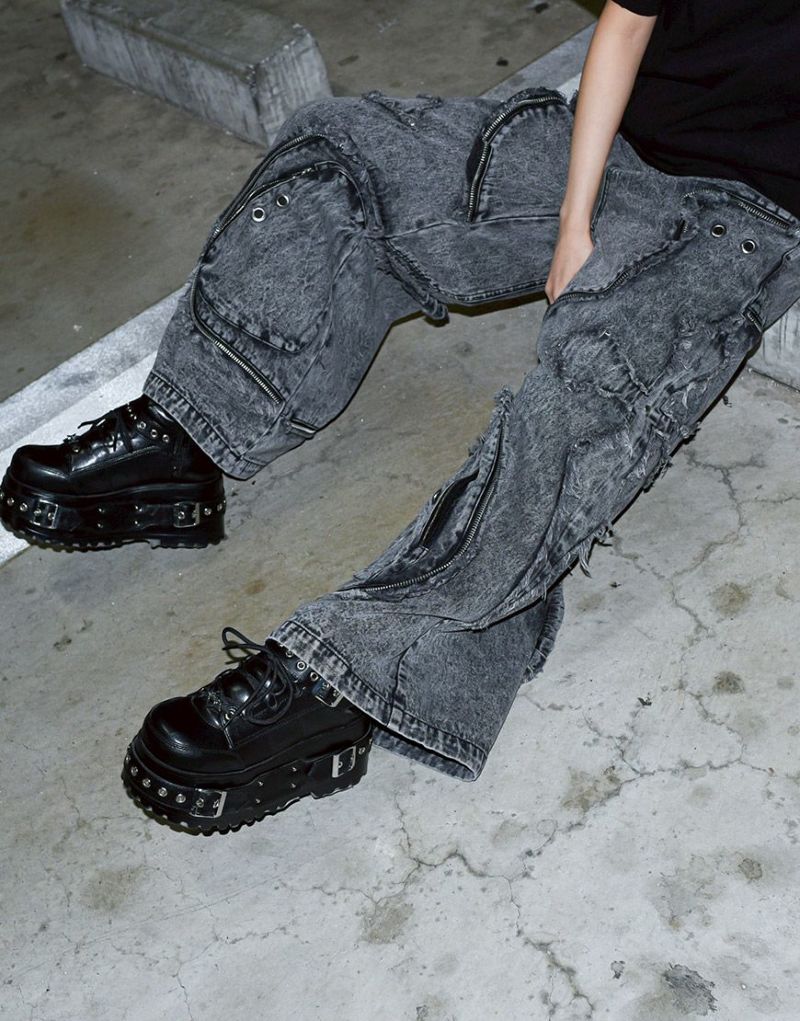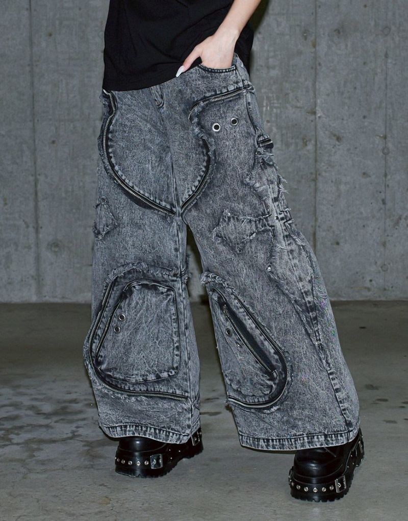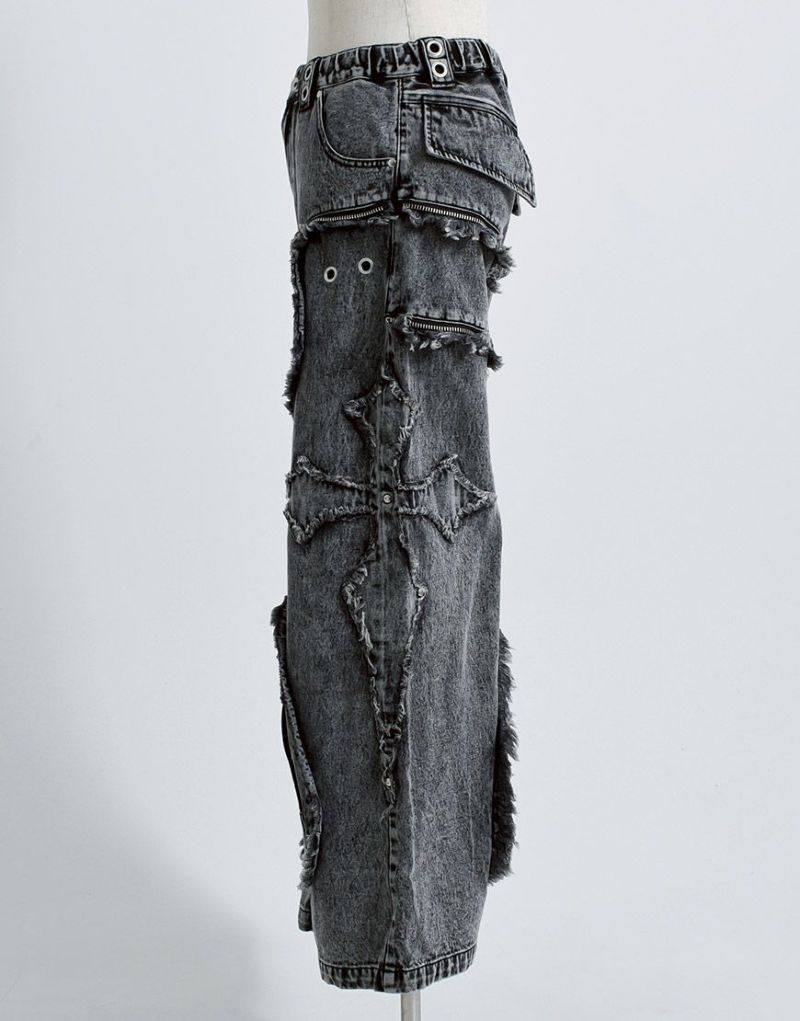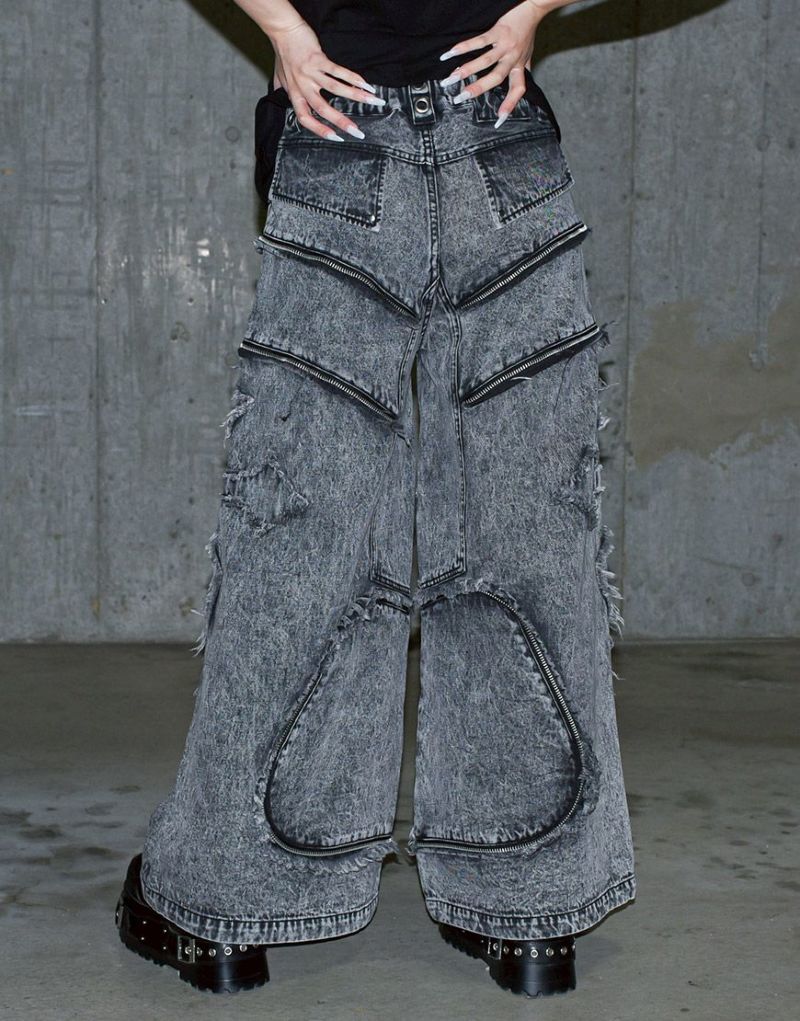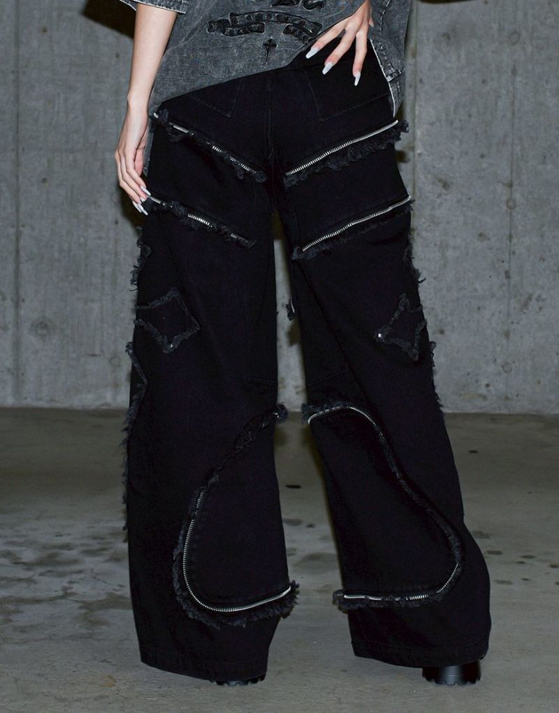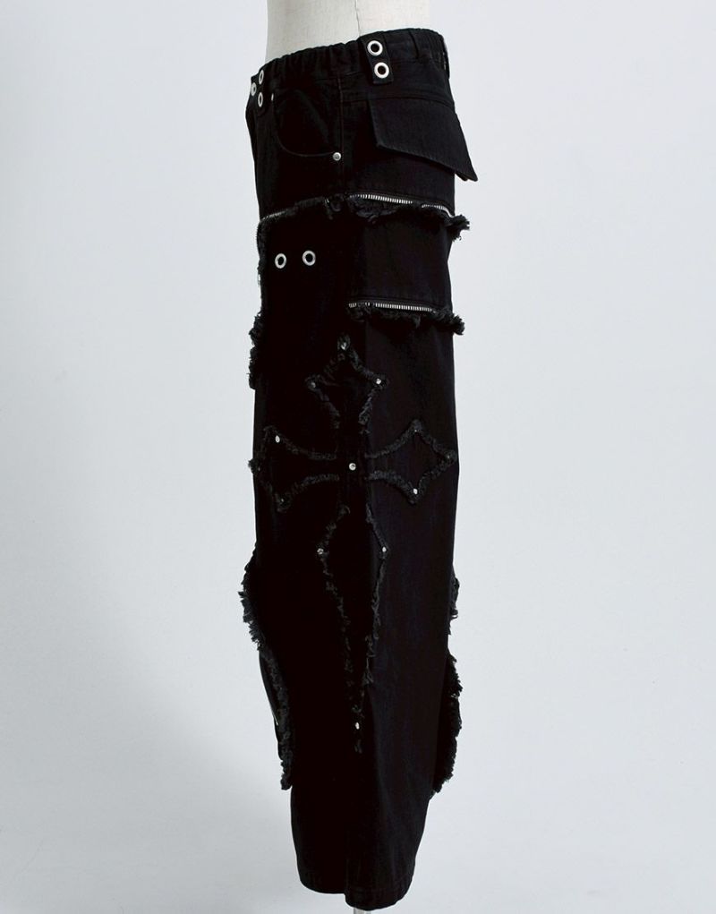 PantsIntroducing wide denim pants with cross-patch detailing from REFLEM.