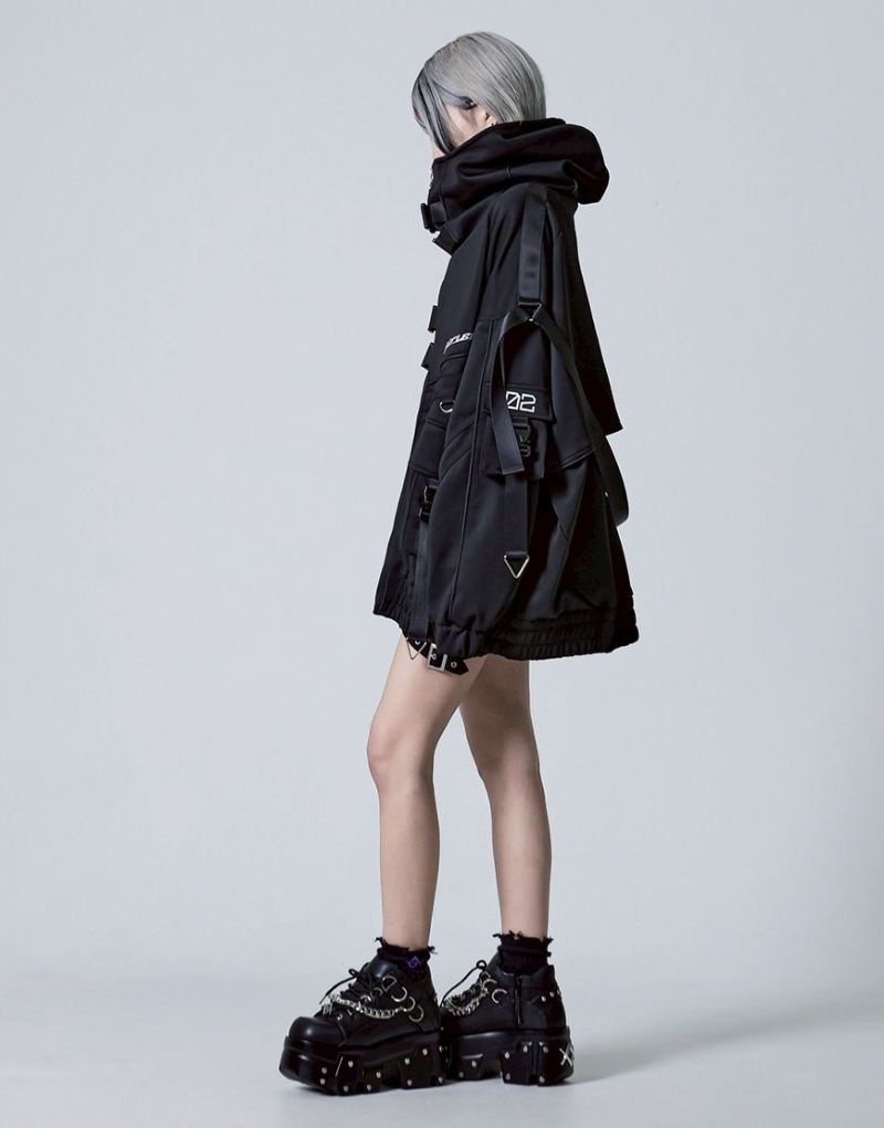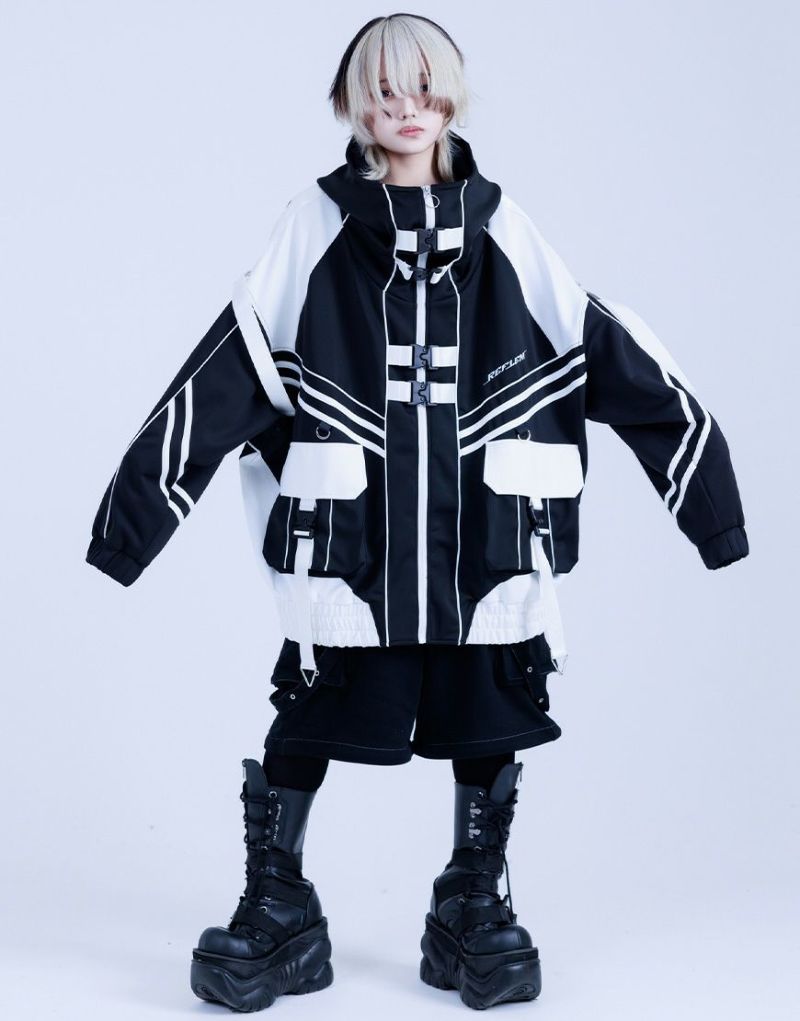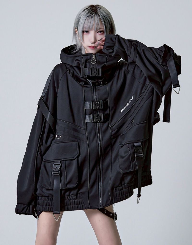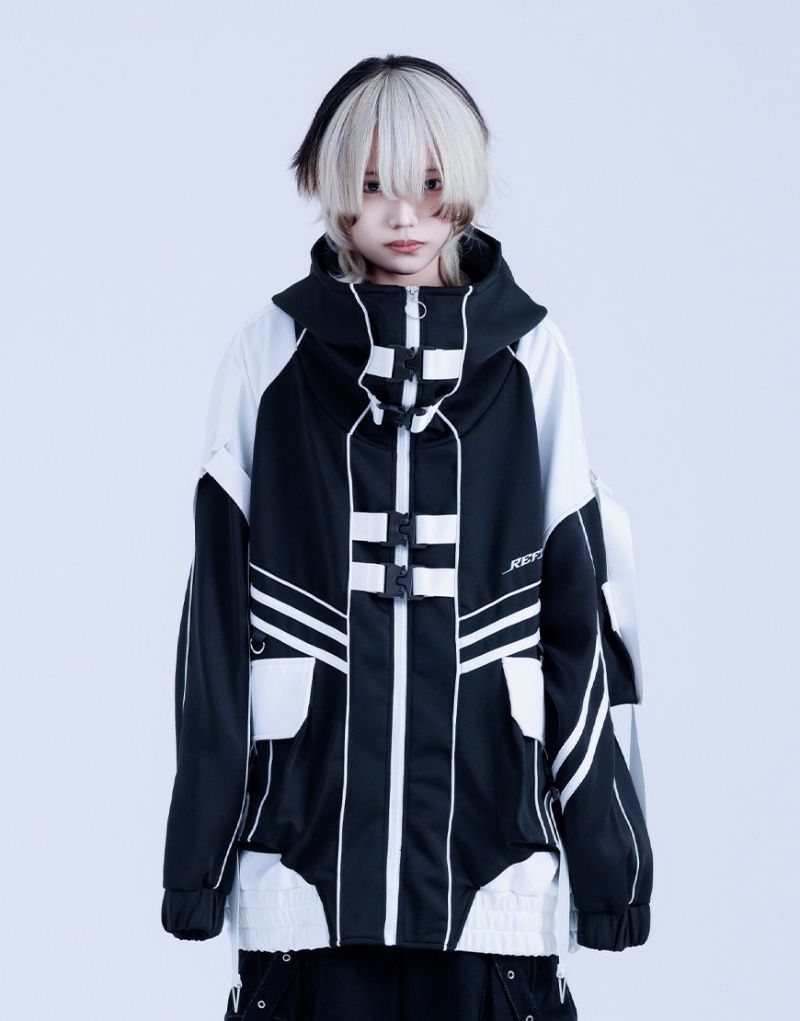REFLEM presents the Cyber Switch Volume Neck Jersey Hoodie.