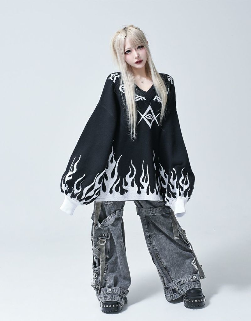 PantsFrom REFLEM is the fire pattern pullover knit.