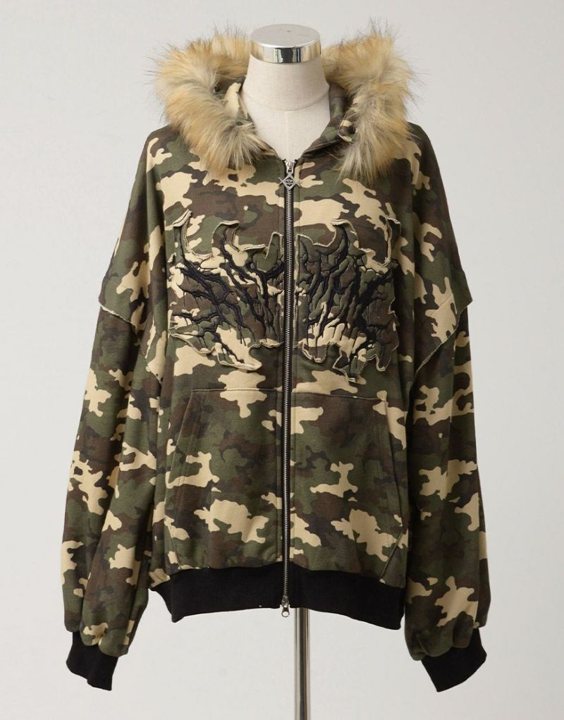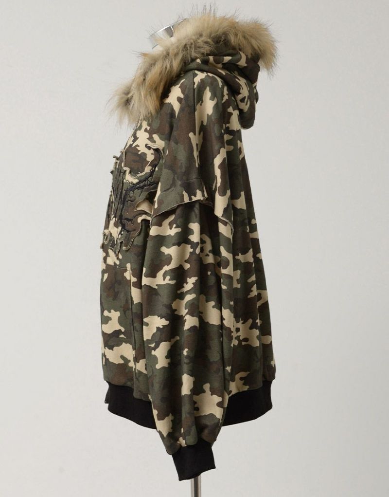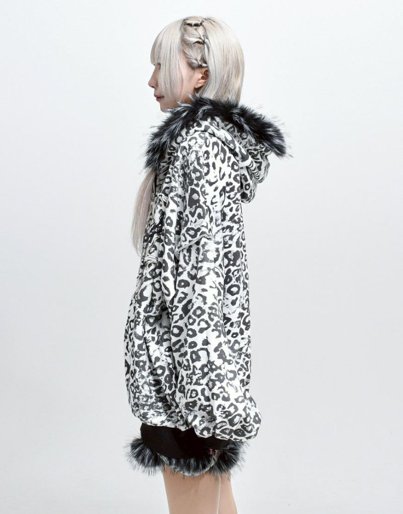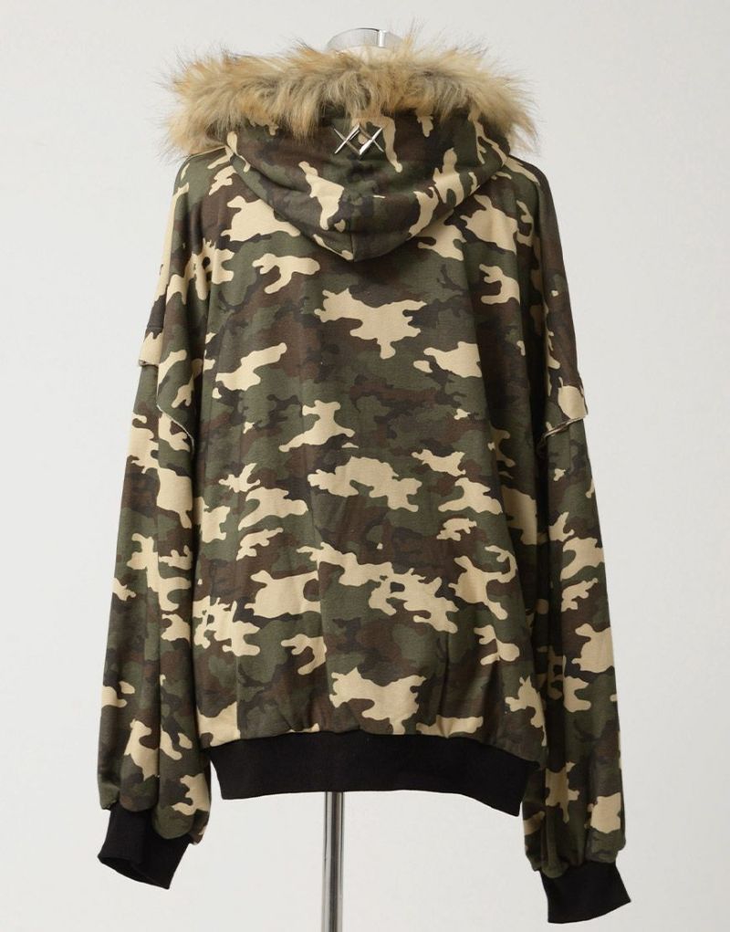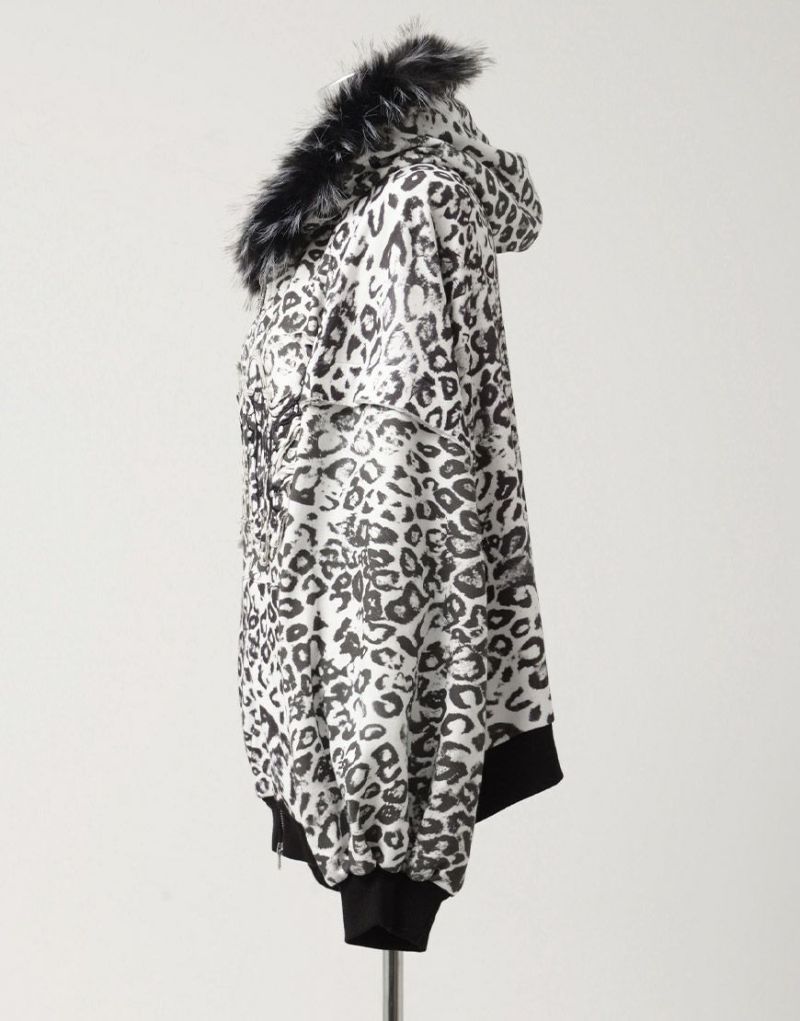 REFLEM presents this striking fur zip hoodie with an all-over print.