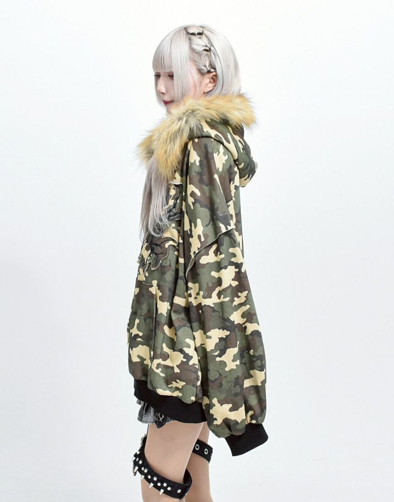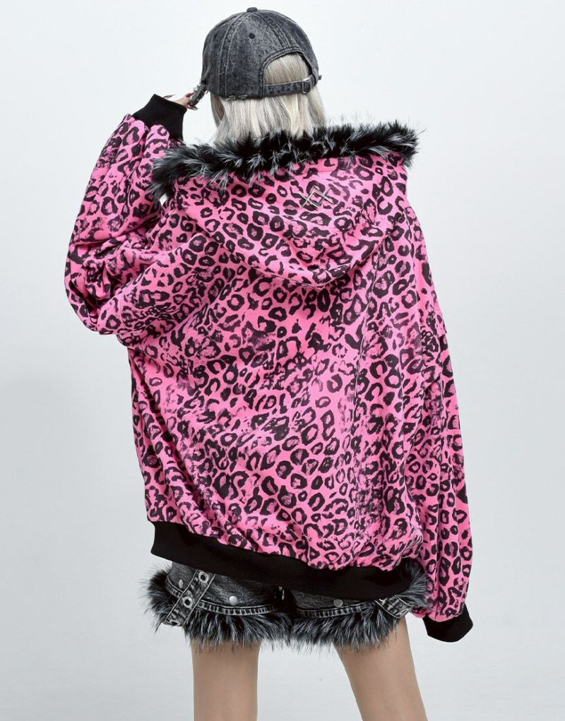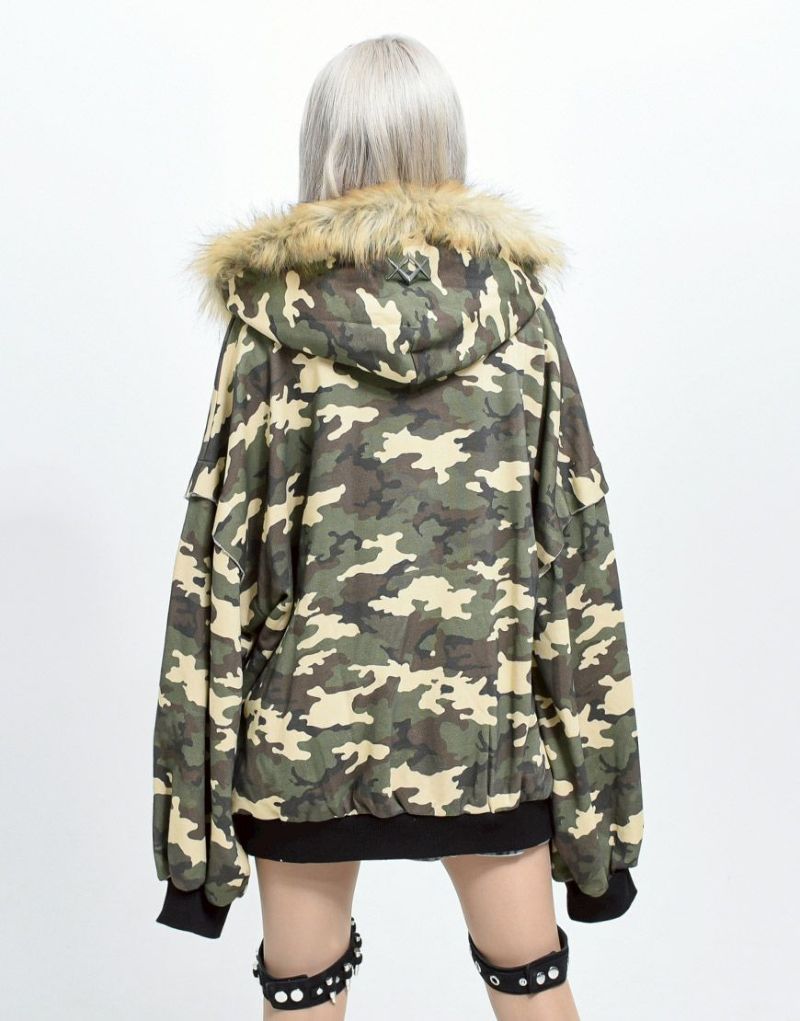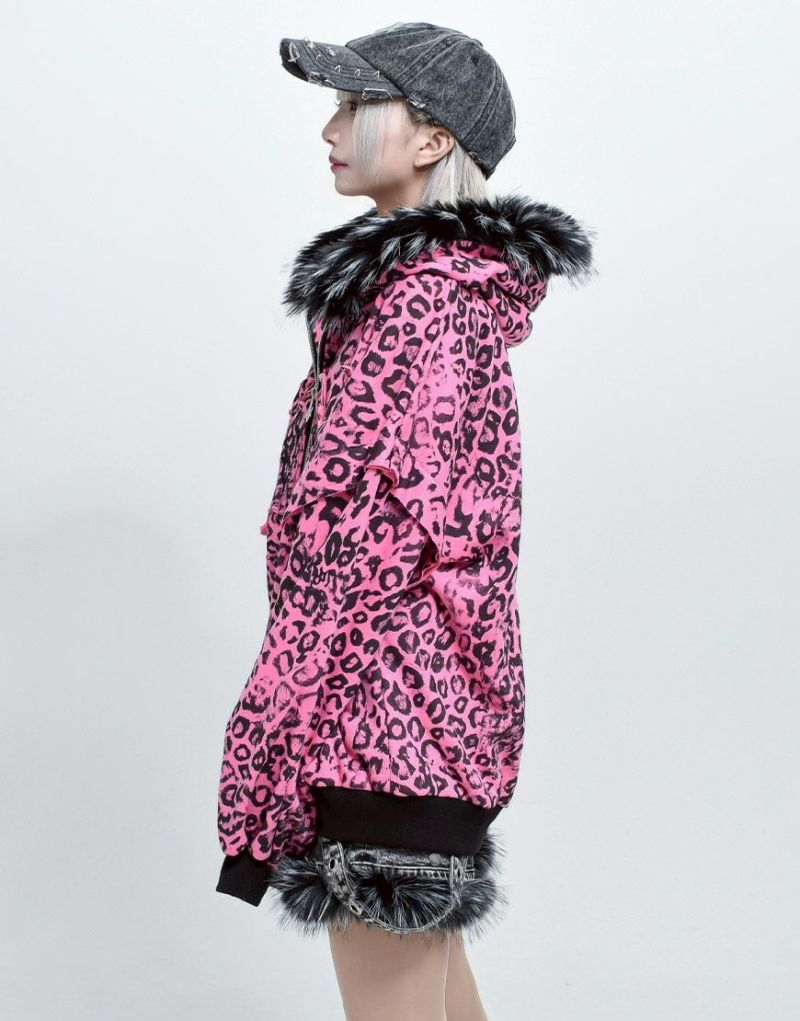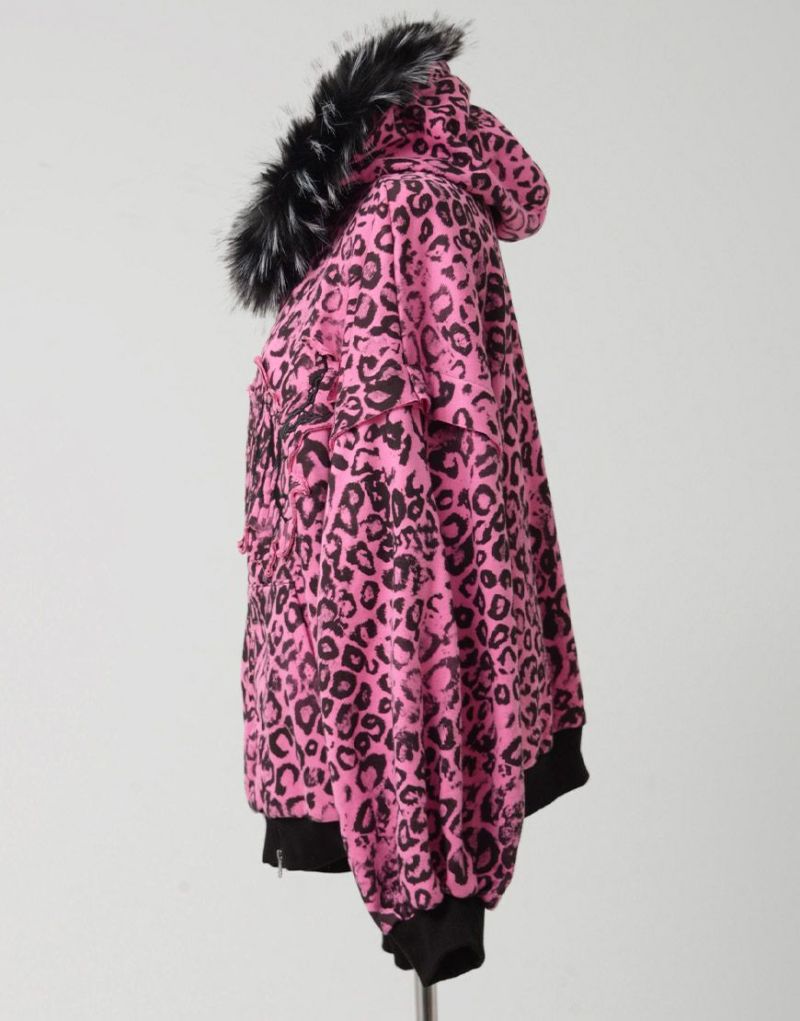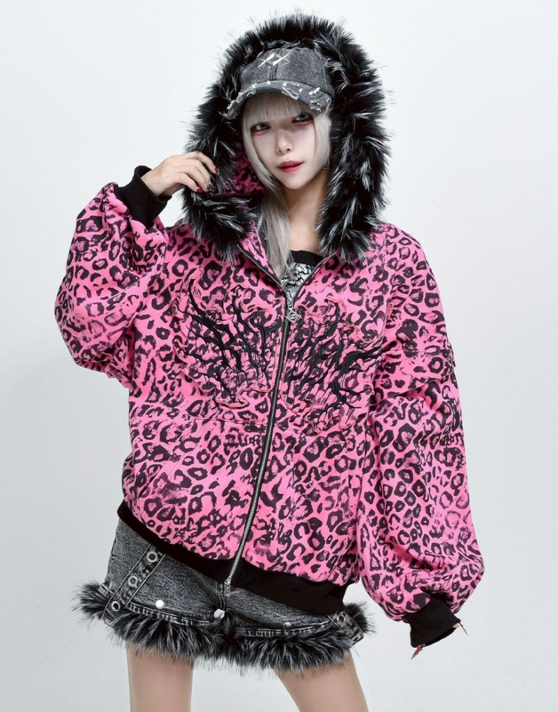 REFLEM presents this striking fur zip hoodie with an all-over print.