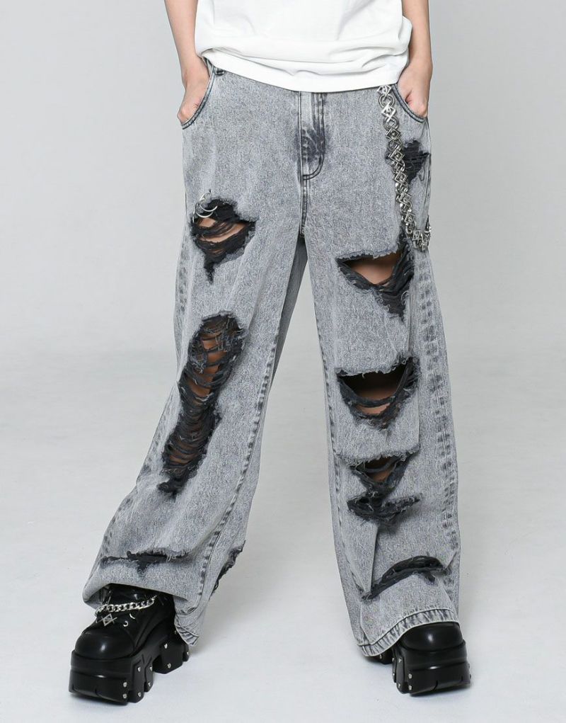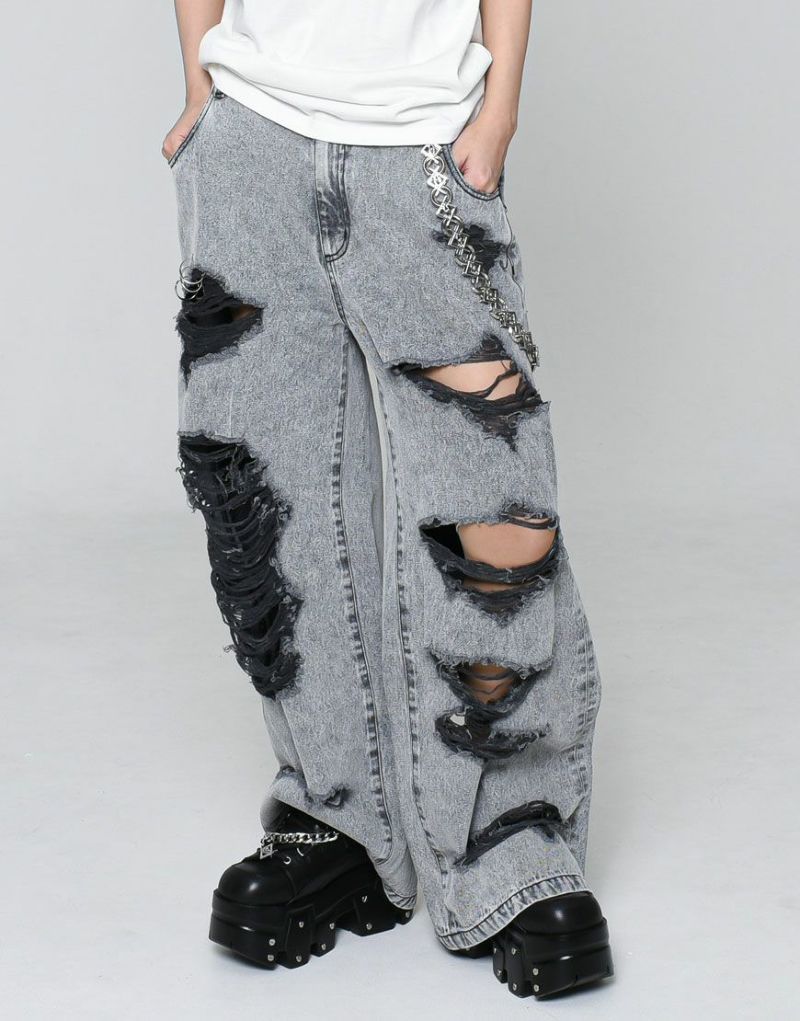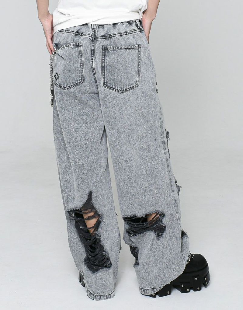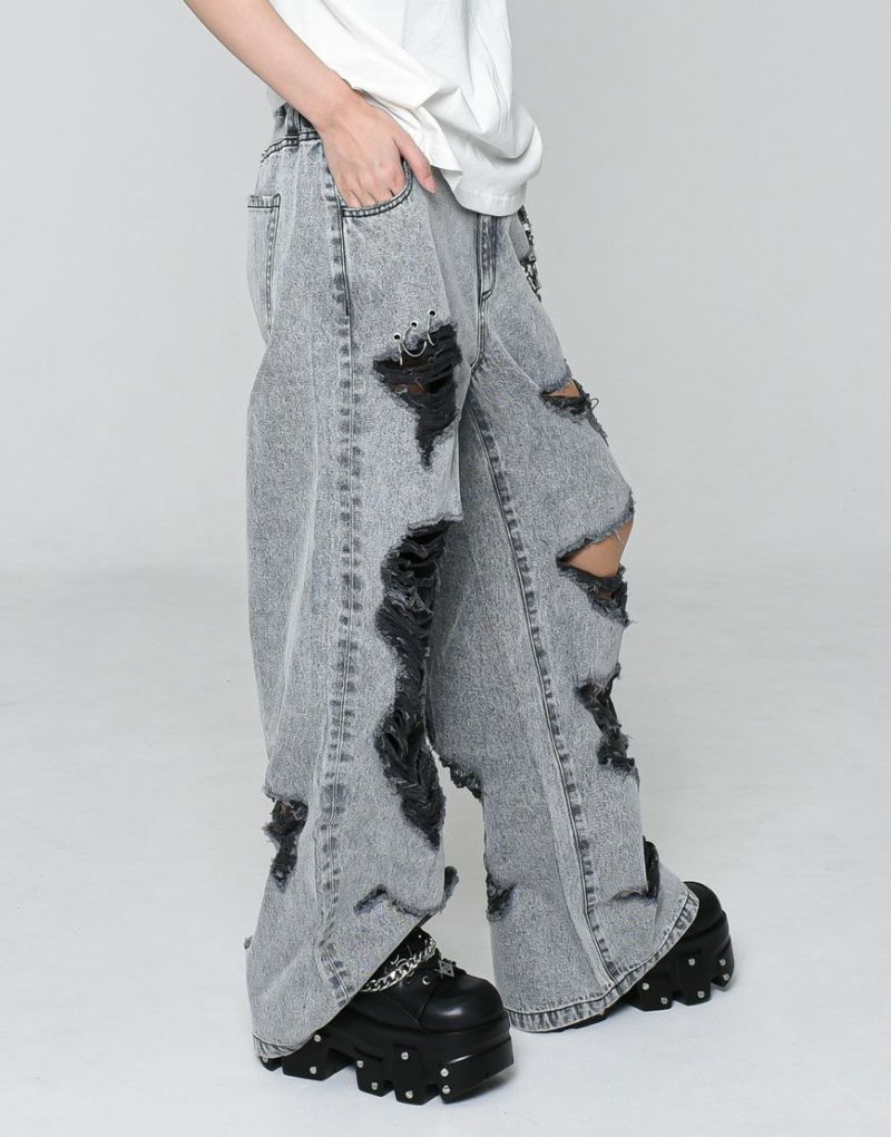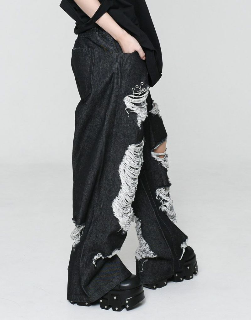 PantsREFLEM presents these high-distressed wide-leg denim pants.