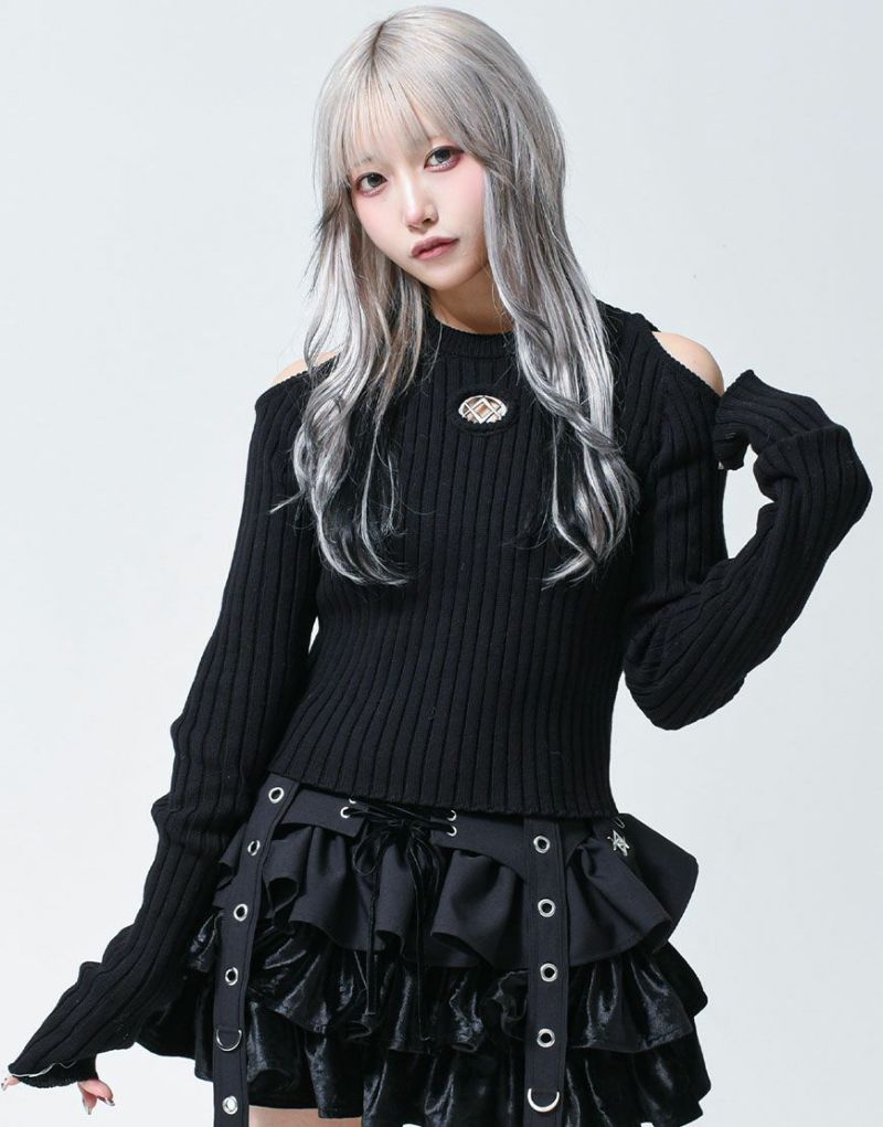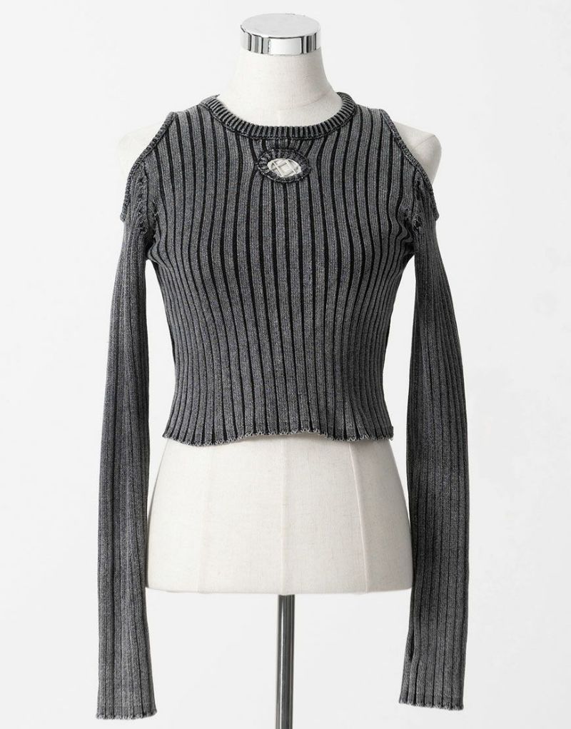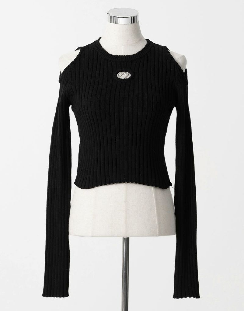 ShirtsThis piece stands out with an oval logo expressed through metal hardware and a carved, cutaway-style shoulder design that draws the eye.