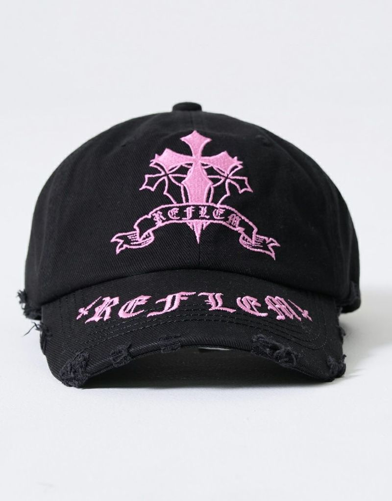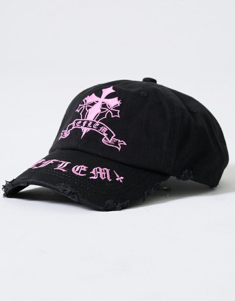 HeadwearIntroducing the cross-embroidered distressed denim cap from REFLEM.