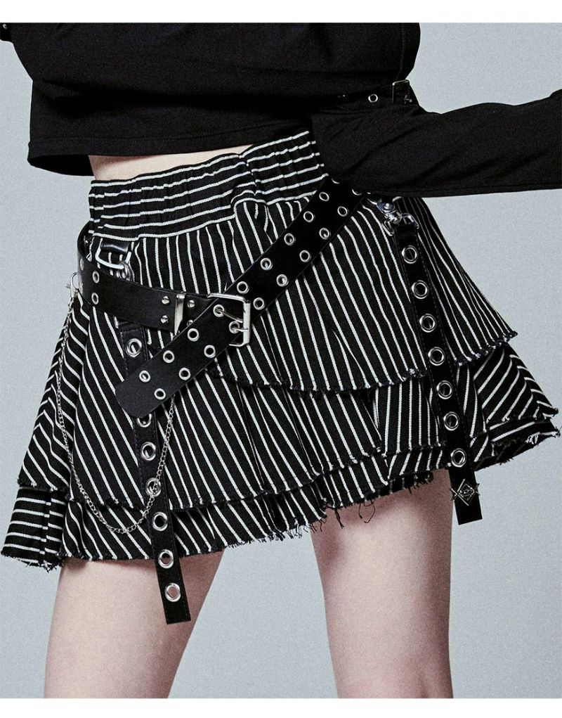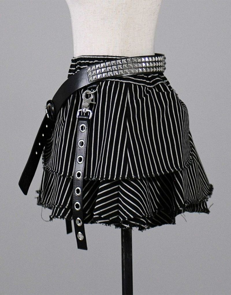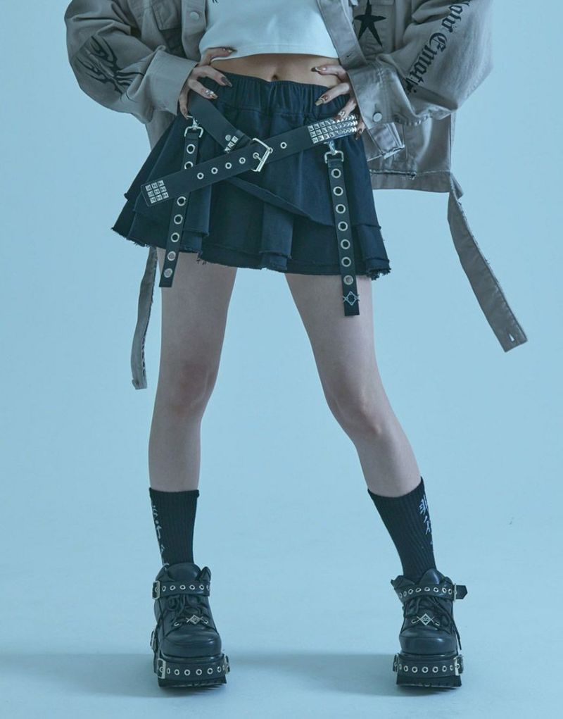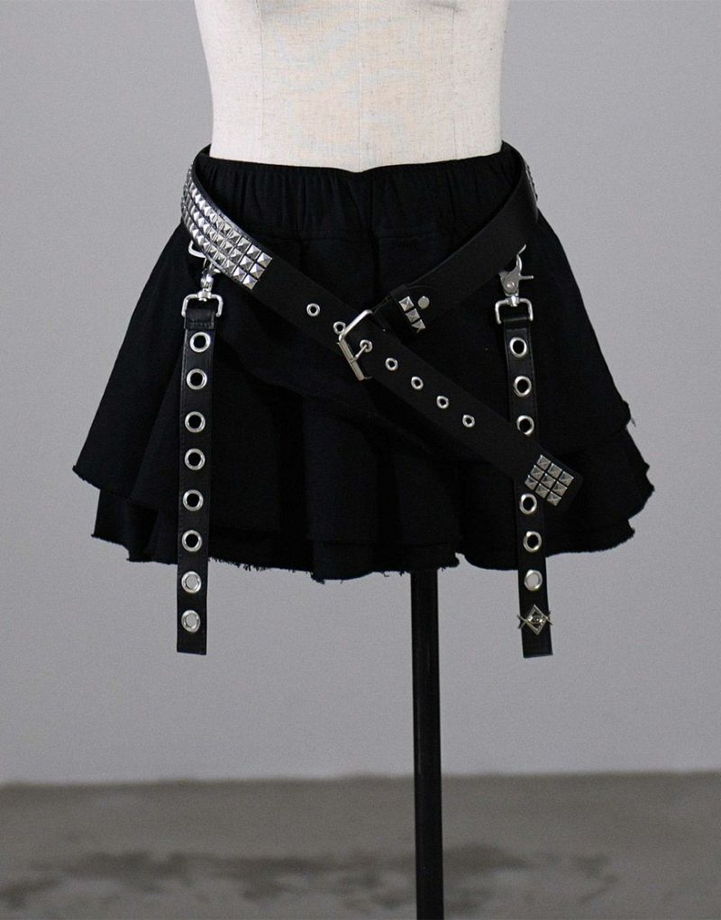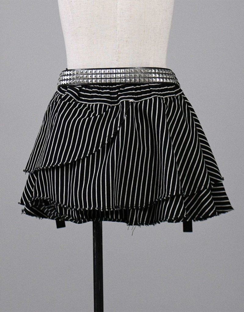 Crafted from cotton twill, this ruffle skirt features a studded belt.