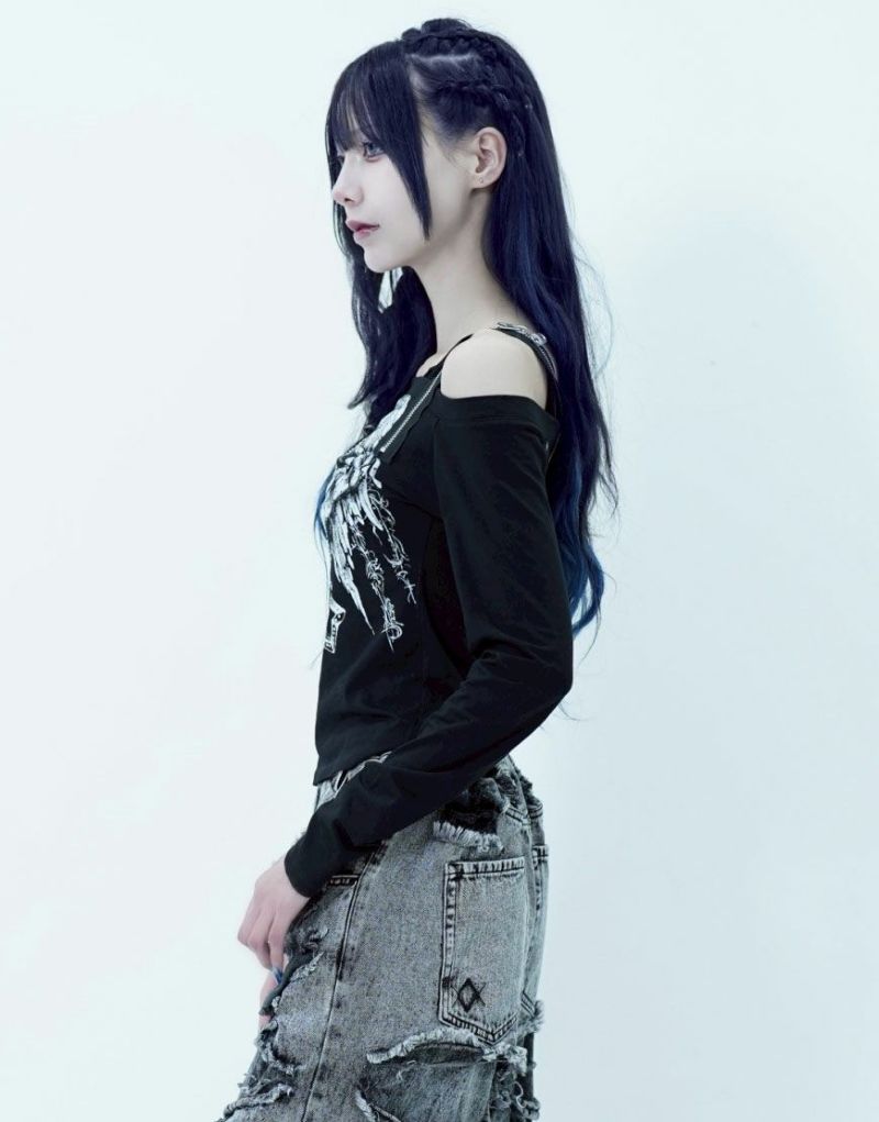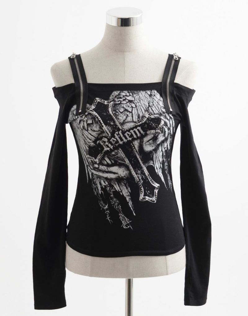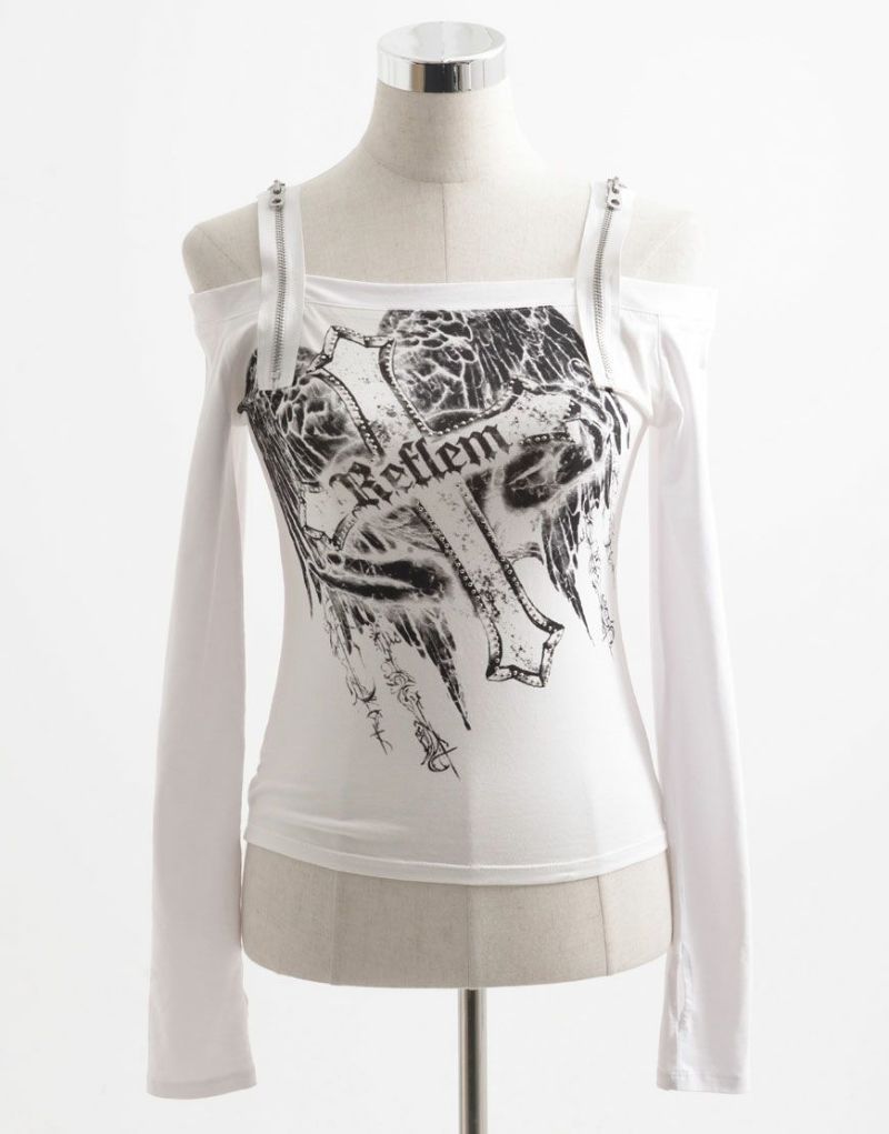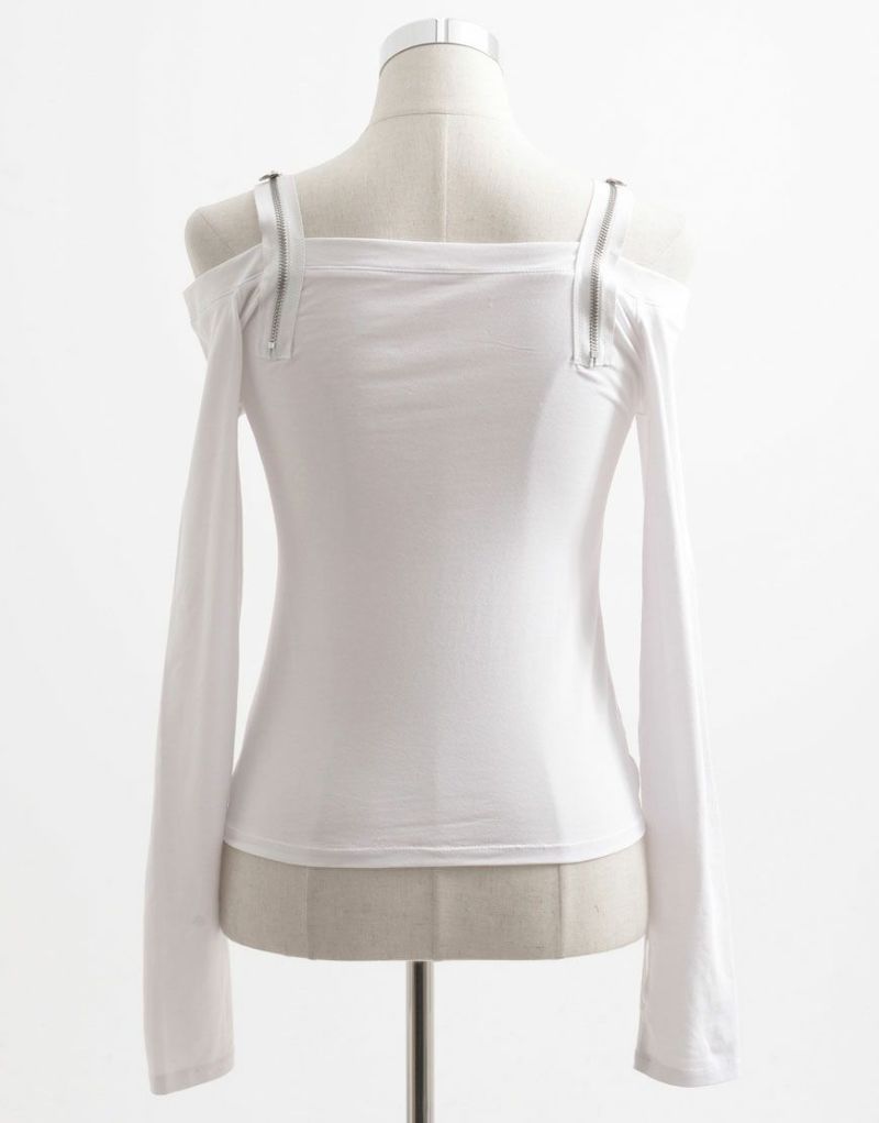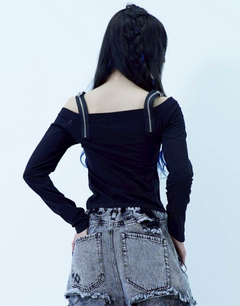 ShirtsREFLEM introduces this off-the-shoulder long-sleeve top with a zip belt.