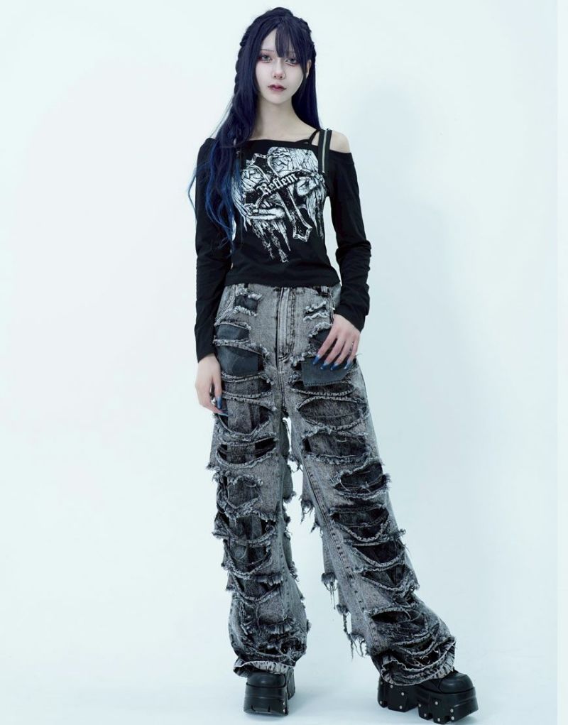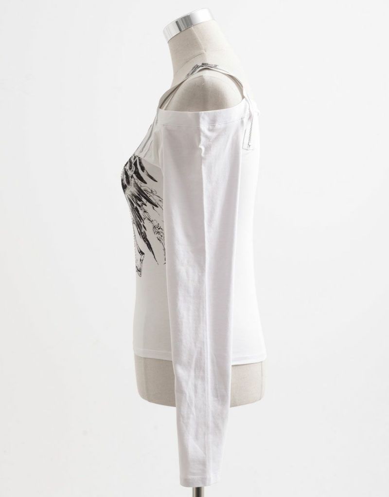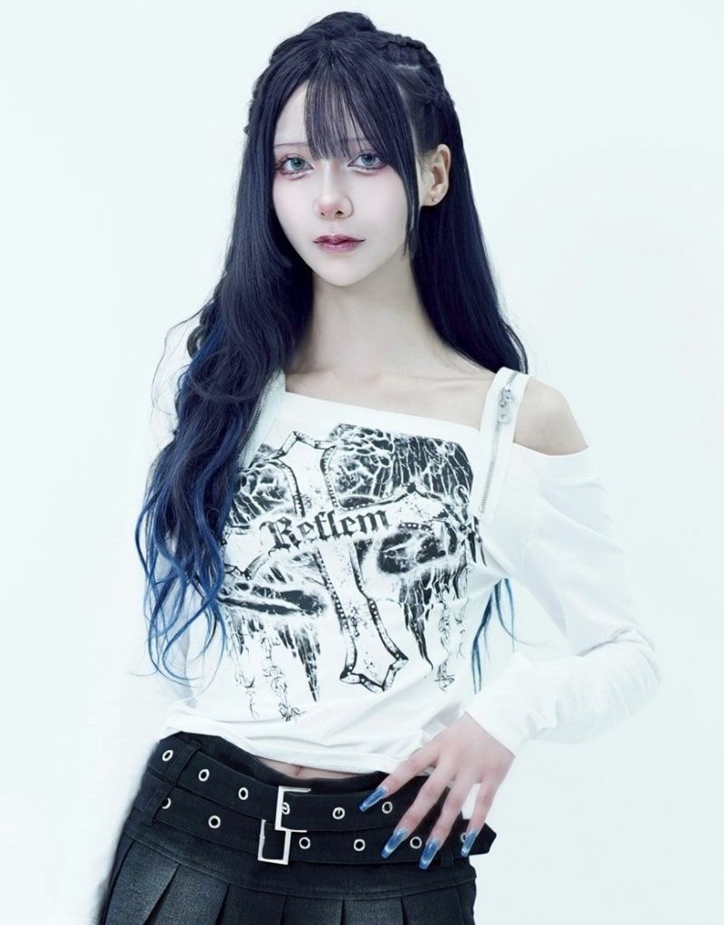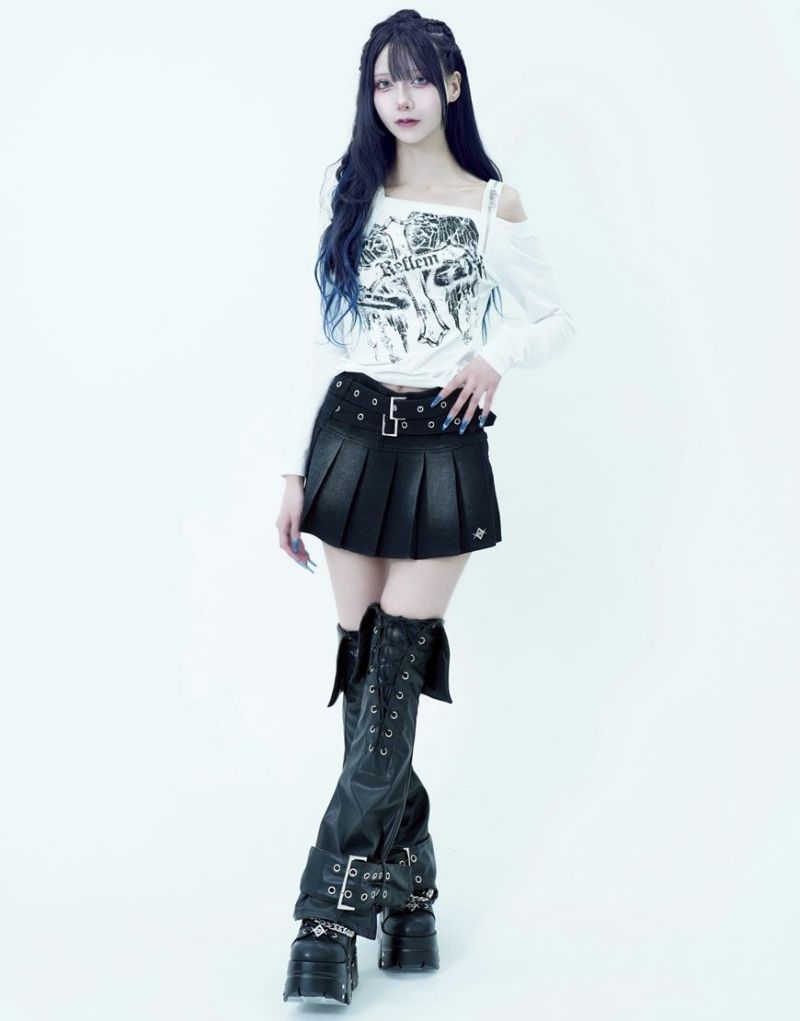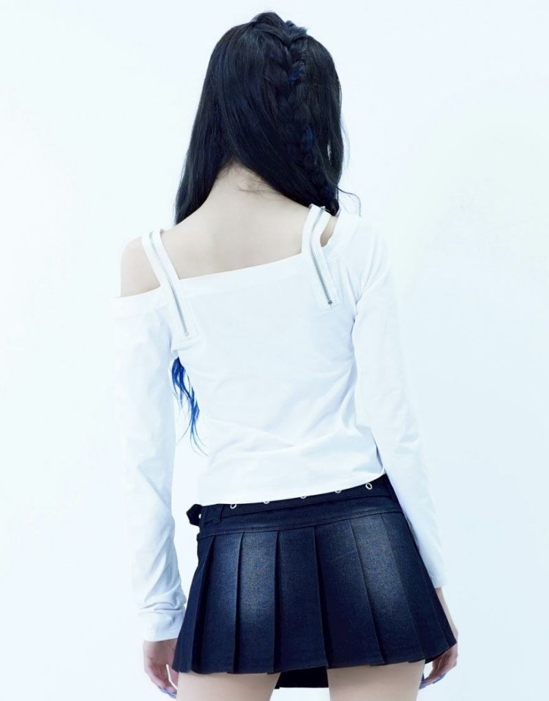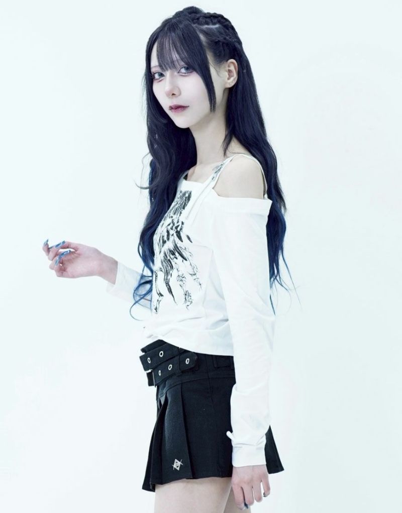 ShirtsREFLEM introduces this off-the-shoulder long-sleeve top with a zip belt.