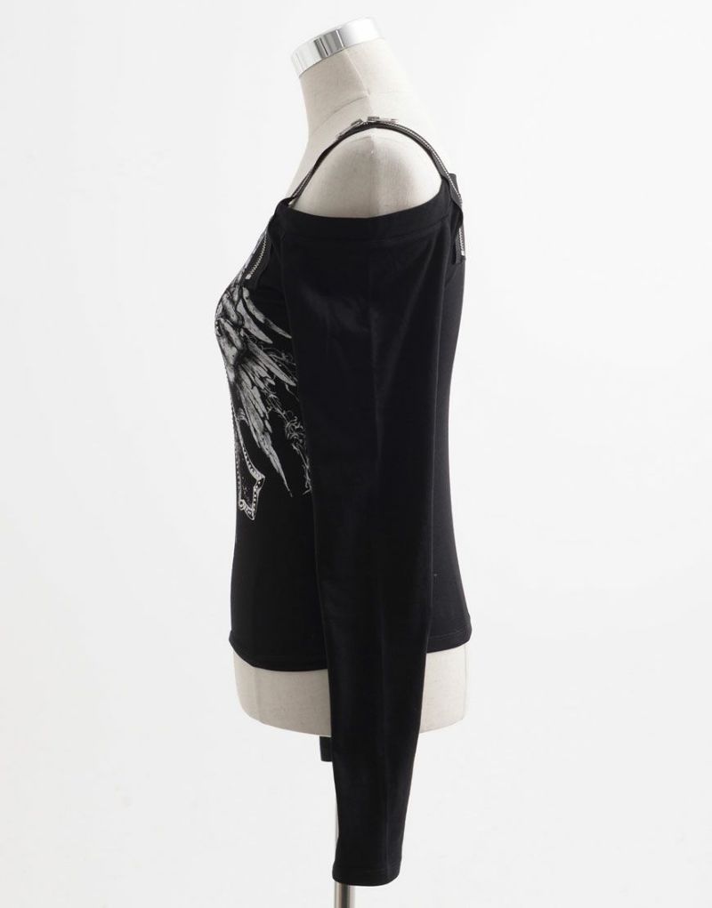 The slim silhouette and off-the-shoulder design combine a feminine and modern vibe. Perfect for black and monochrome outfits, or as an inner layer for layering.